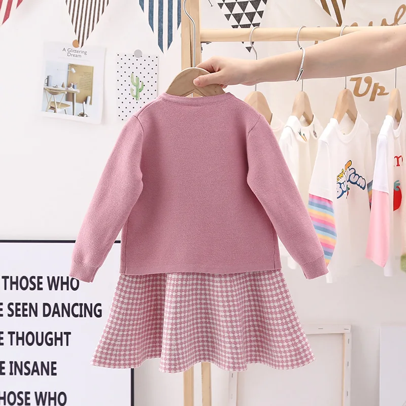 Осеннее модное клетчатое платье + пальто с длинным рукавом, комплект из 2 предметов для детей, Рождественская одежда, Детский костюм для малышей, комплект для маленьких девочек