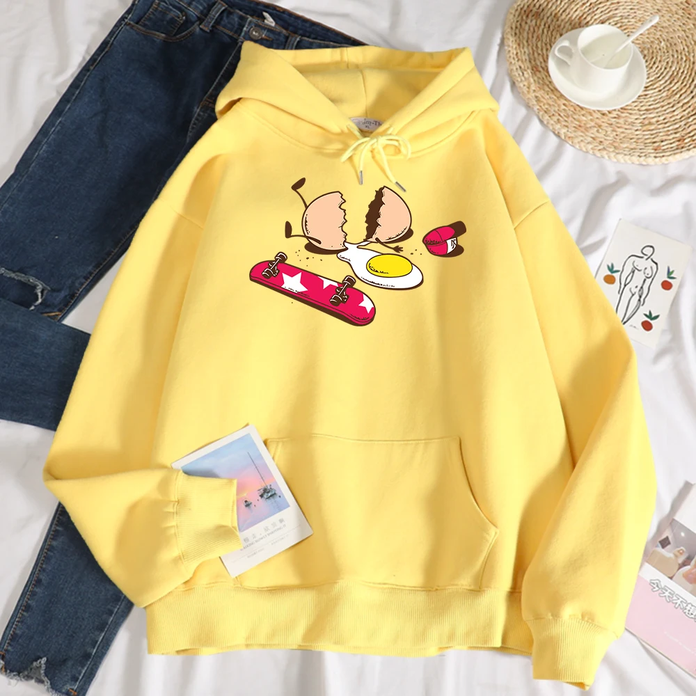 Толстовка мужская с капюшоном и принтом поломанного яйца, осенняя