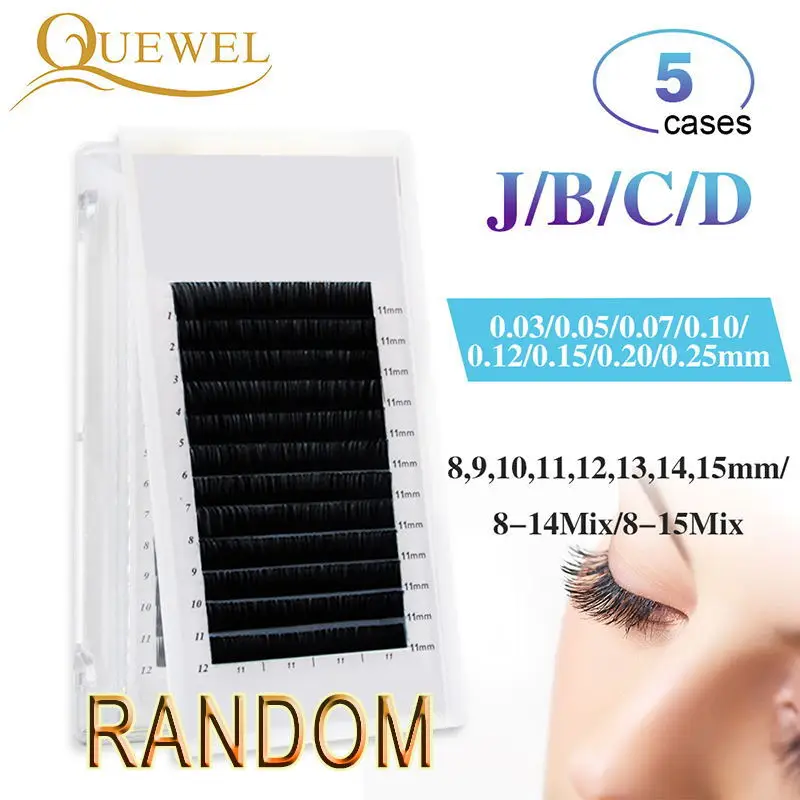 Quewel любой размер 5 лотков Индивидуальные ресницы Накладные норковые ресницы наращивание натуральные ресницы для профессионалов для обучения школы