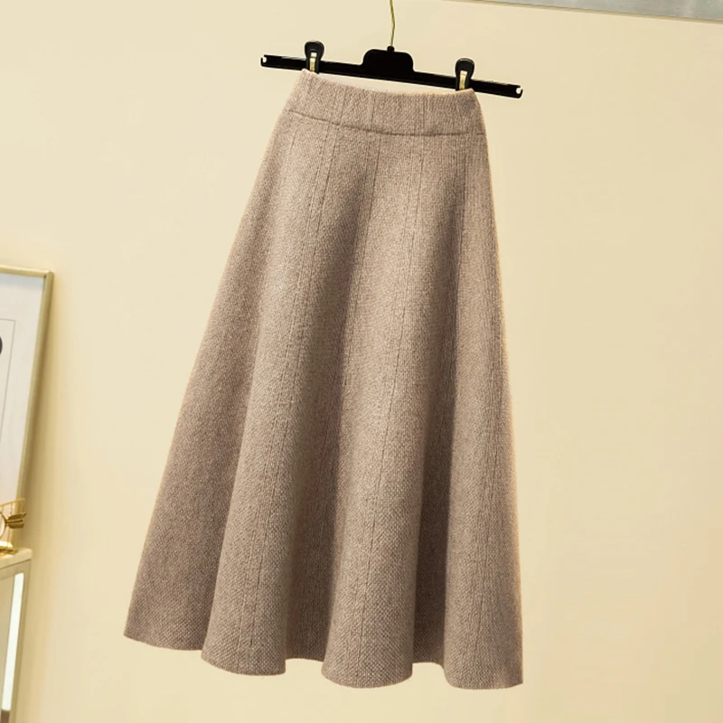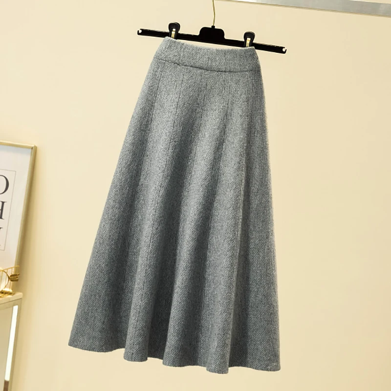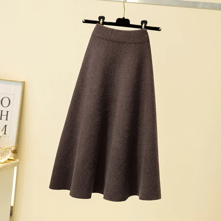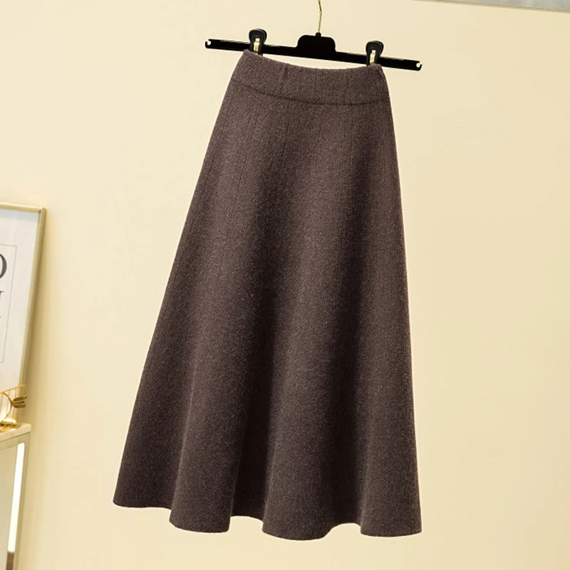 Осенне-зимние длинные вязаные юбки-клеш из смесовой шерсти