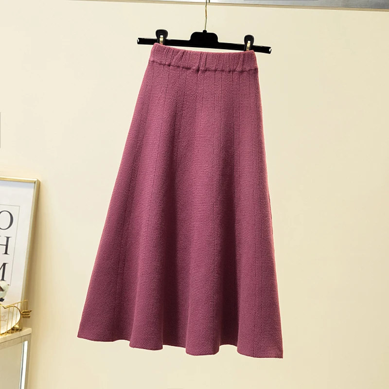 Зимняя теплая мягкая вязаная винтажная юбка для женщин 2021 осень эластичная высокая талия Трикотажная хлопковая облегающая плиссированная юбка миди для женщин