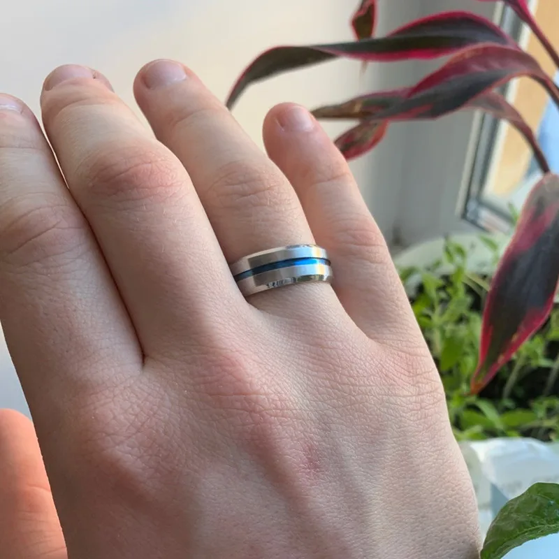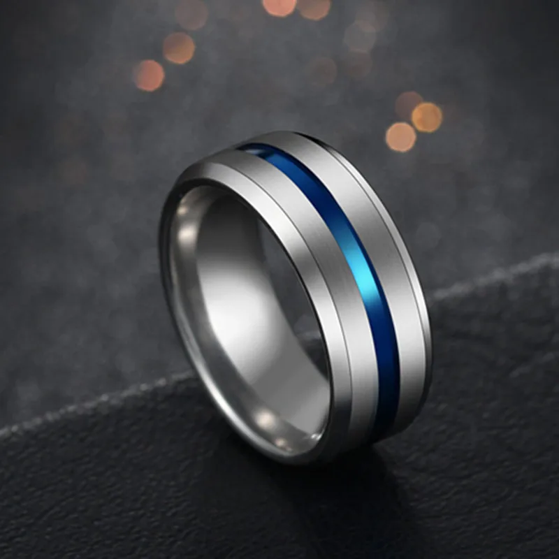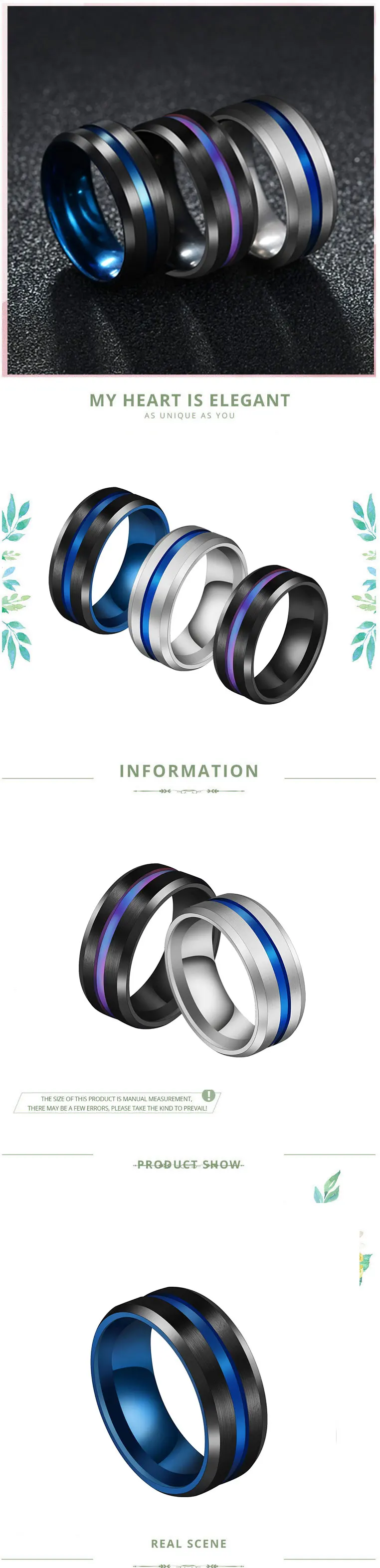 Мужское кольцо из нержавеющей стали, черного и синего цвета, 8 мм