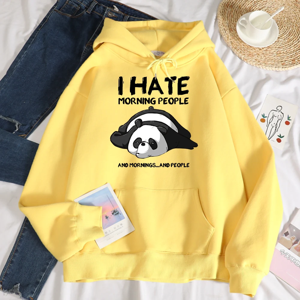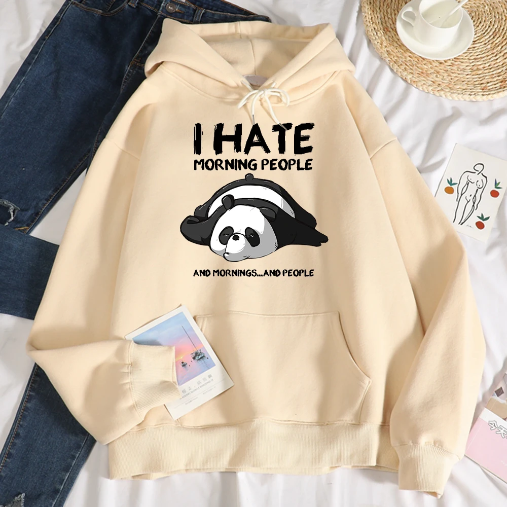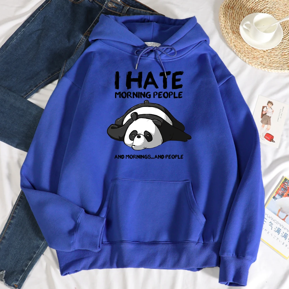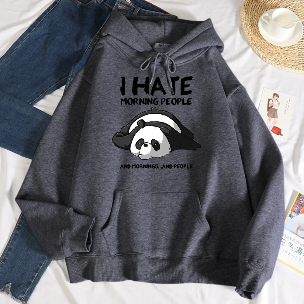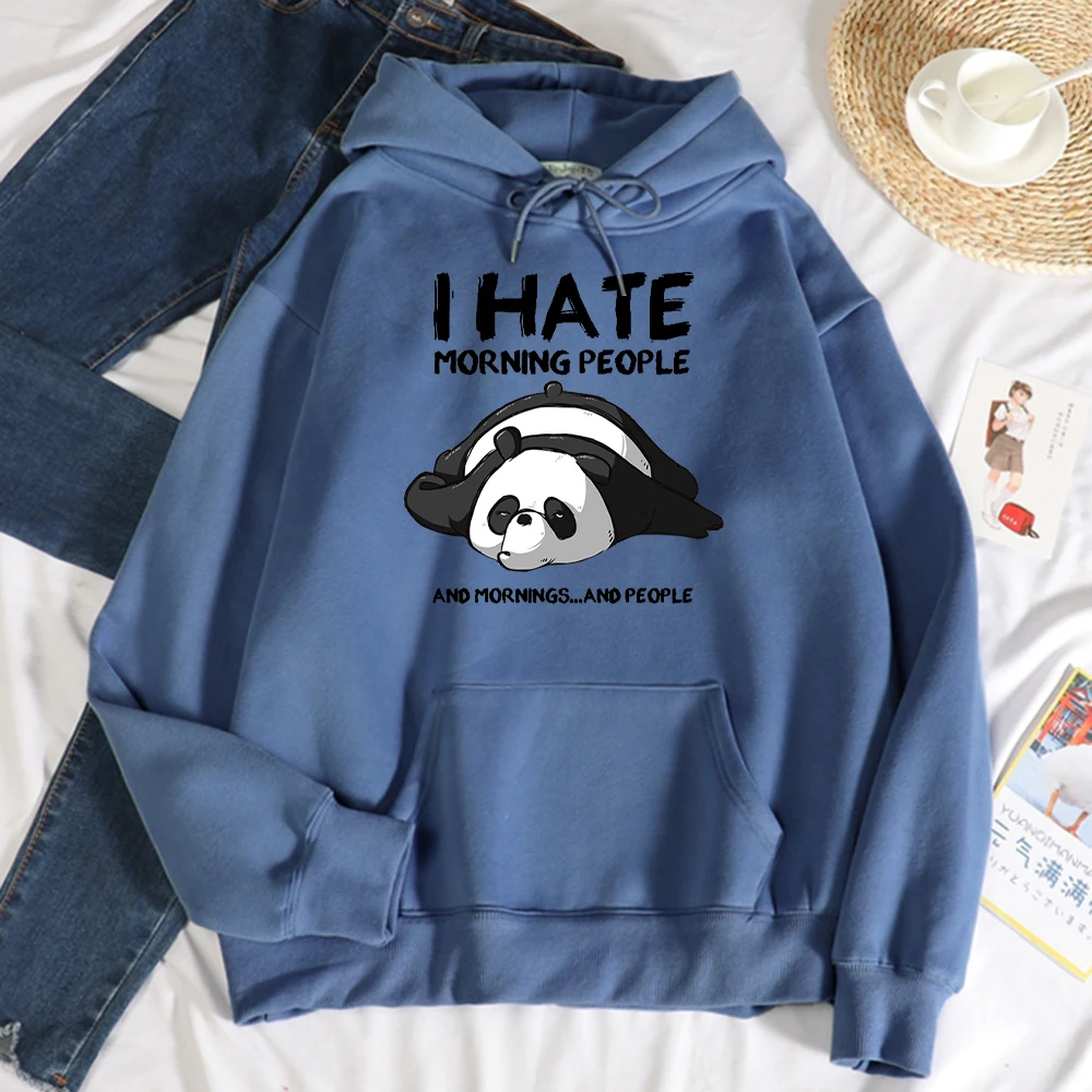 Толстовка мужская оверсайз с принтом ленивая панда I Hate Morning People, Повседневная Осенняя флисовая толстовка с капюшоном, модная мягкая одежда
