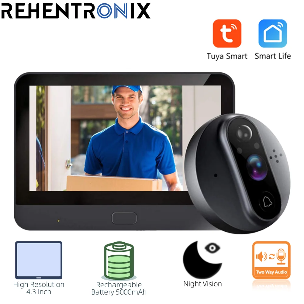 Дверной звонок Tuya с Wi-Fi и цветным экраном 4,3 дюйма, умный двухсторонний звук, ночное видение, аккумулятор мА, четкий и громкий звук, устройство для просмотра