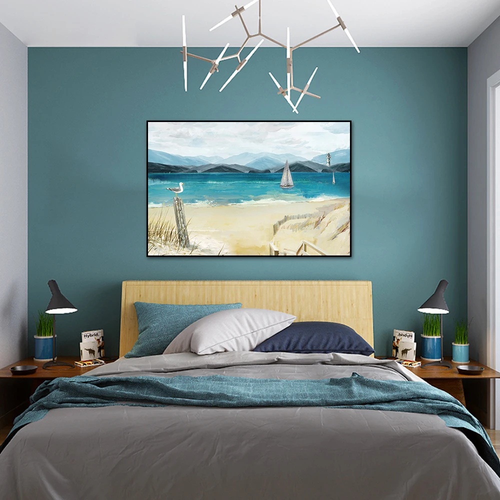 Абстрактная живопись гор, море, пляж на холсте, скандинавские Мультяшные плакаты и принты, настенное искусство для гостиной, украшение для дома
