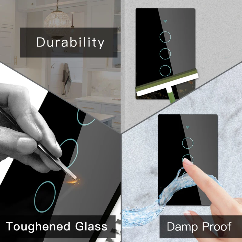 Умный сенсорный выключатель Zigbee US, выключатель для умного дома без нейтрального провода, 124-кнопочный, с дистанционным управлением через приложение