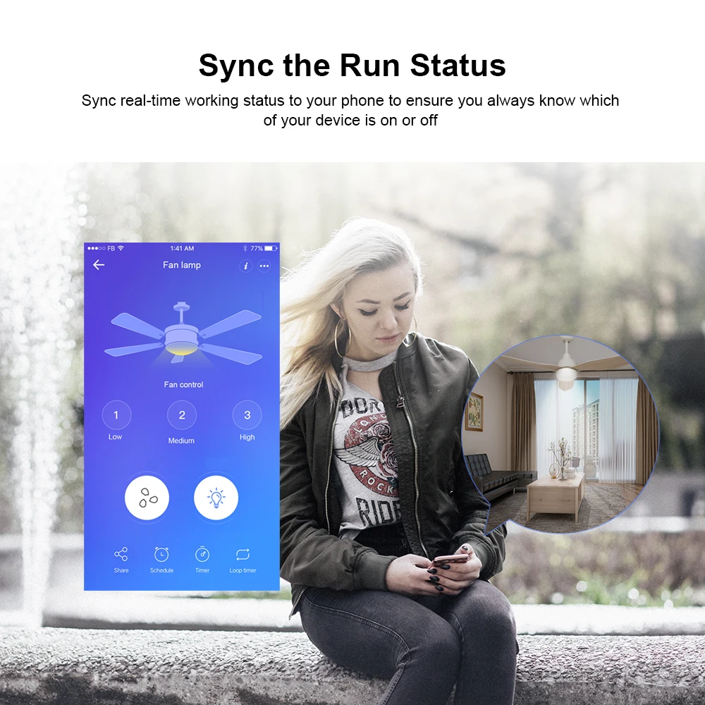 Умный потолочный вентилятор, светильник, пульт дистанционного управления