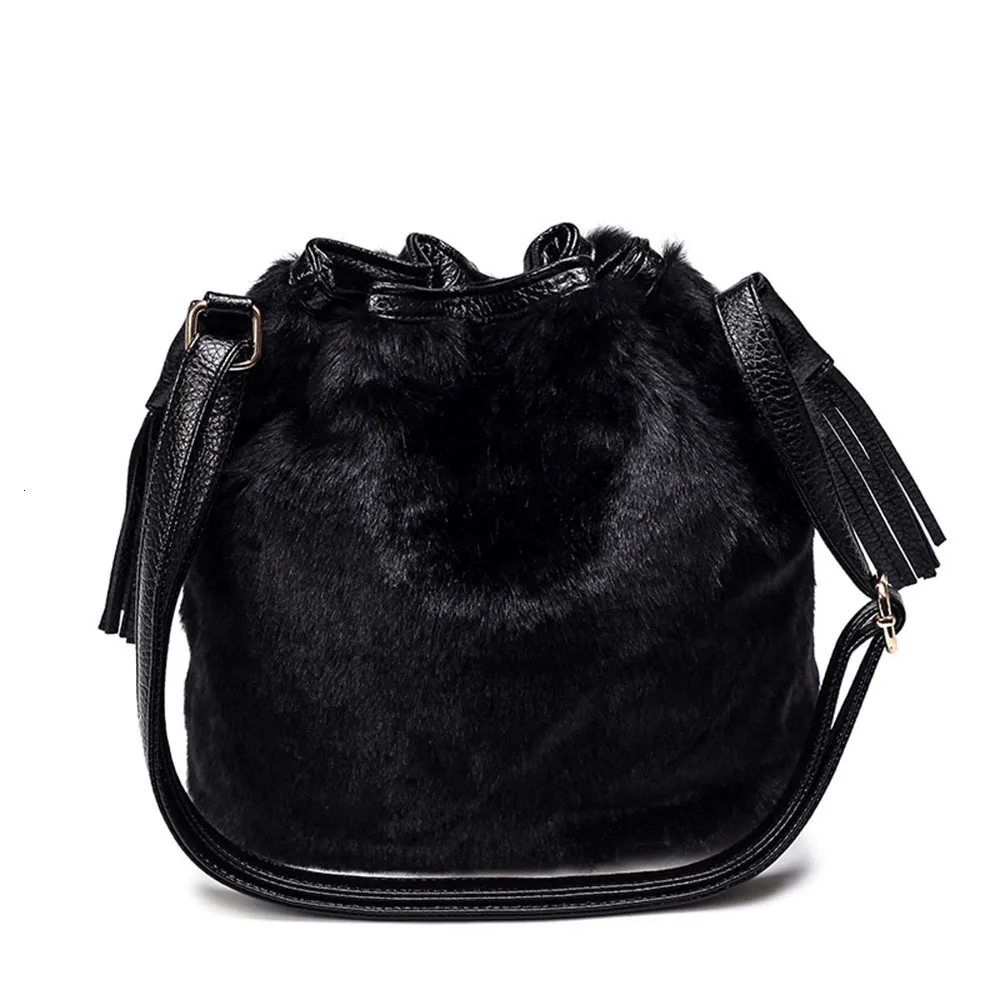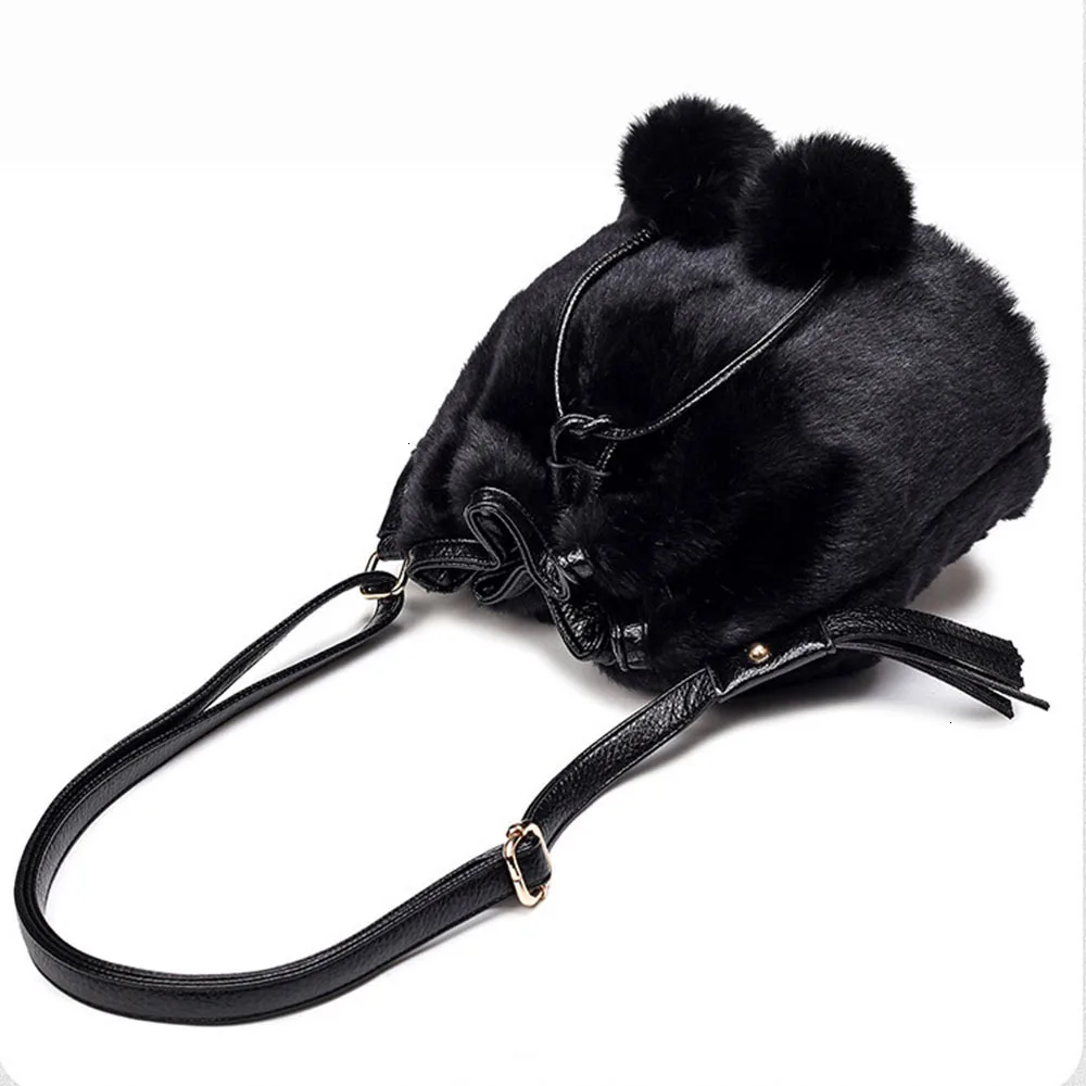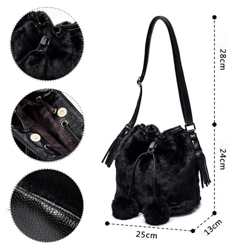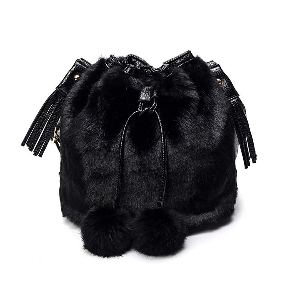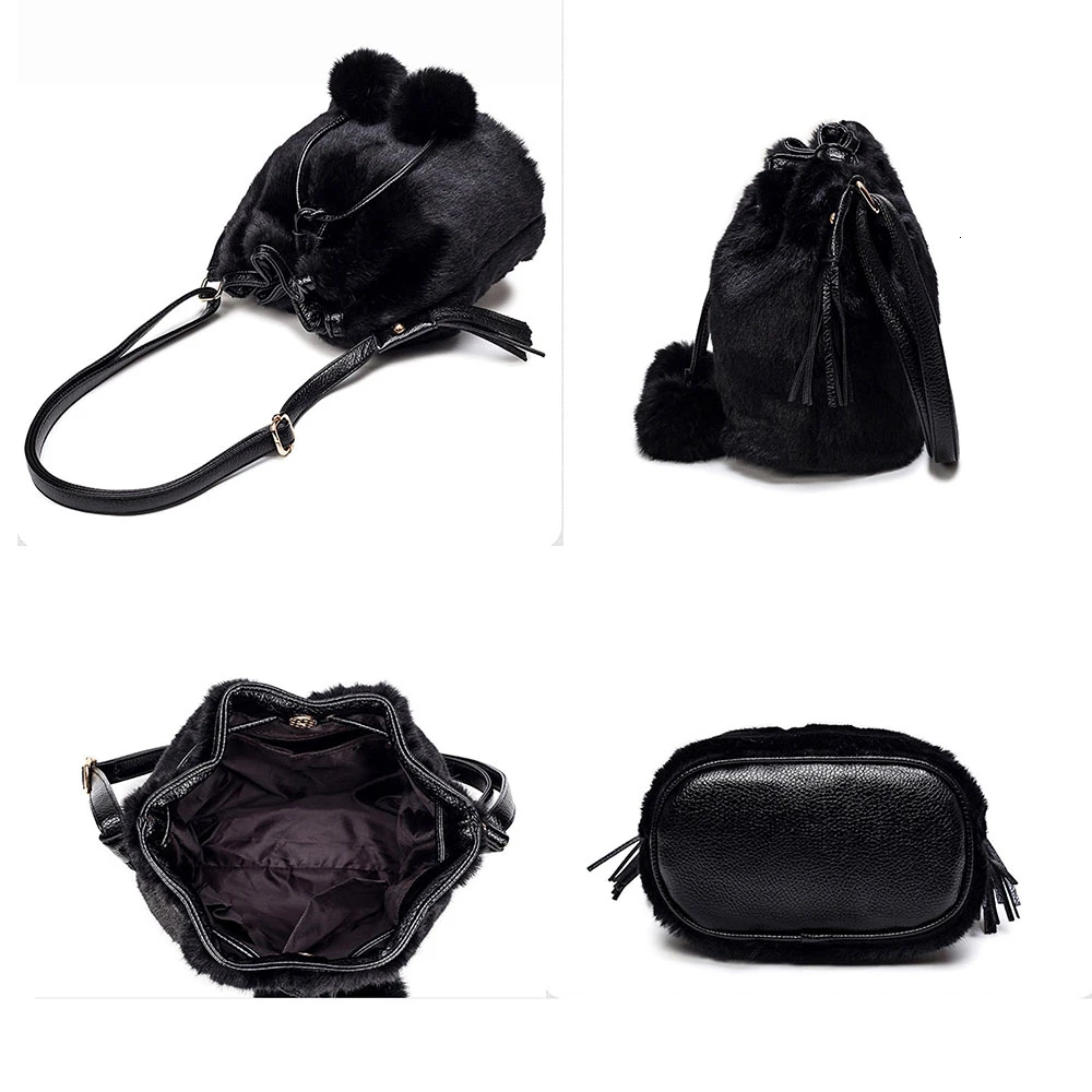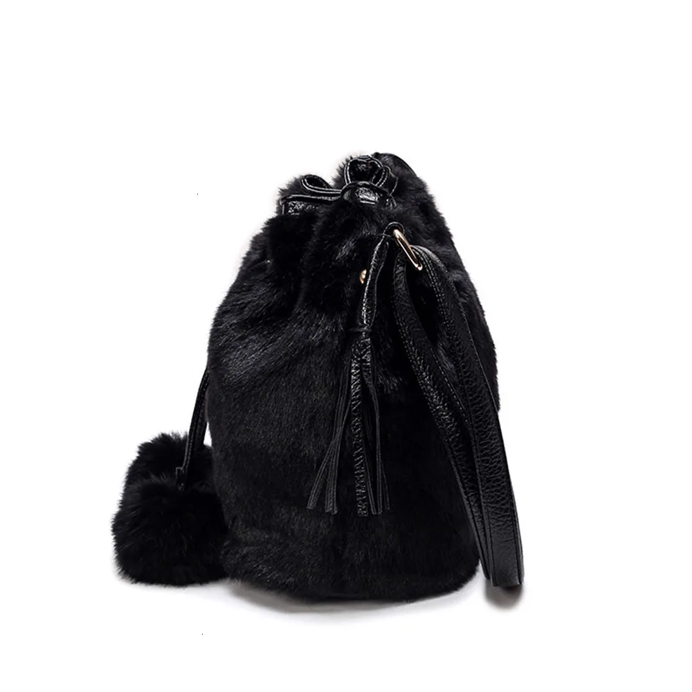 Зимняя модная женская сумка через плечо, маленькая меховая сумка-ведро из искусственного меха, ручная сумка на шнурке, кошелек для девушек, сумка через плечо с помпоном