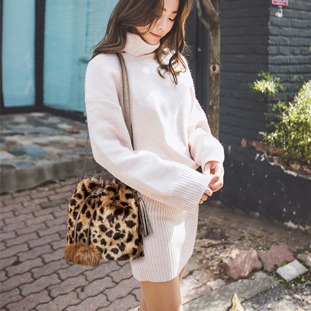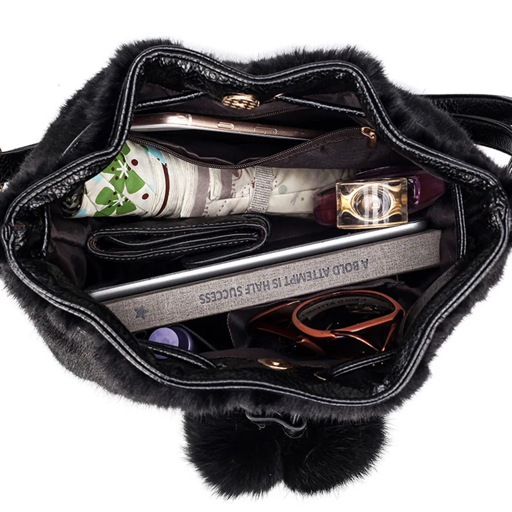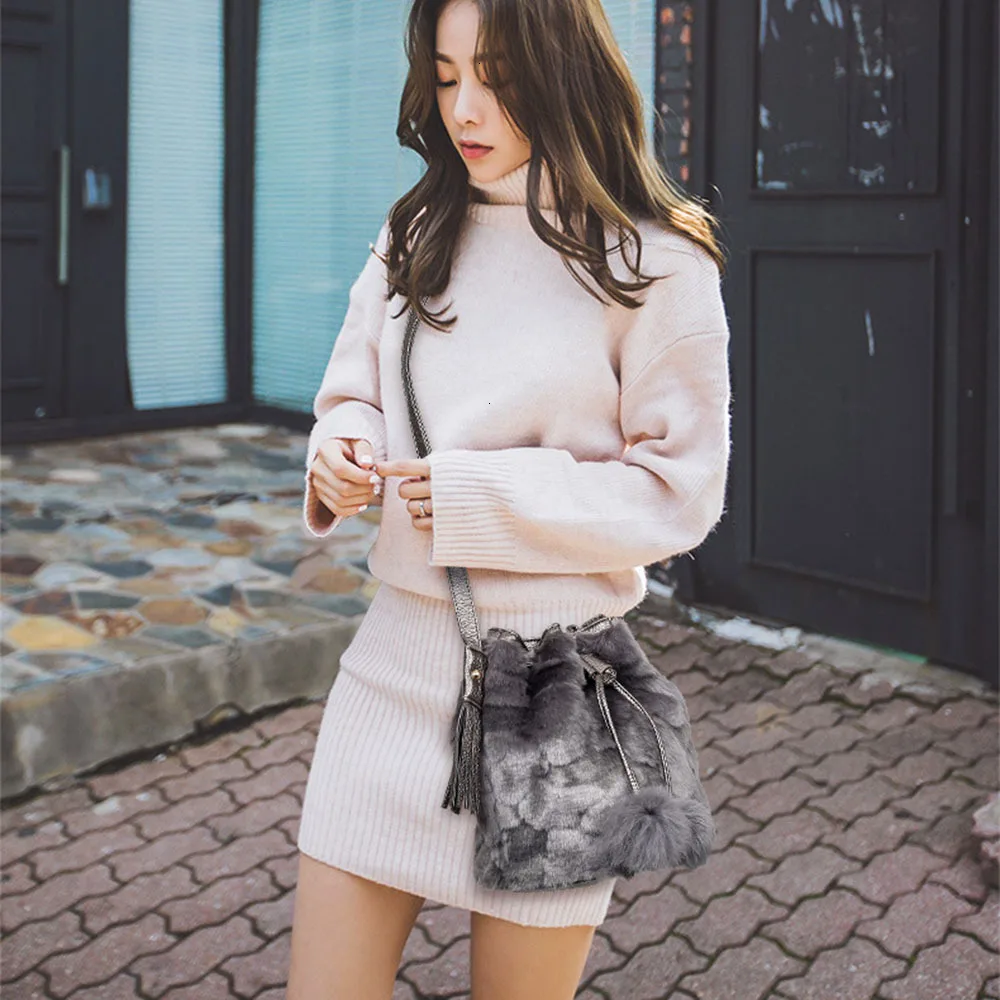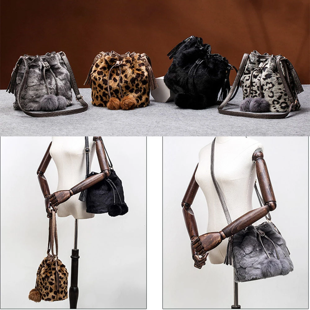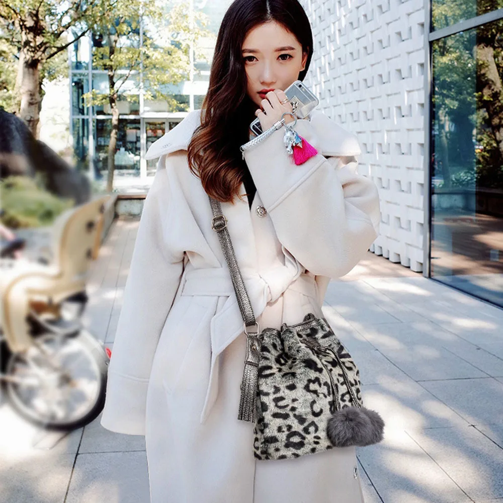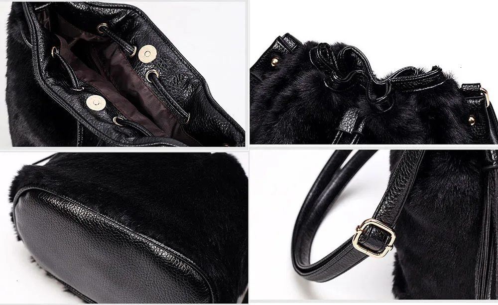 Зимняя модная женская сумка через плечо, маленькая меховая сумка-ведро из искусственного меха, ручная сумка на шнурке, кошелек для девушек, сумка через плечо с помпоном