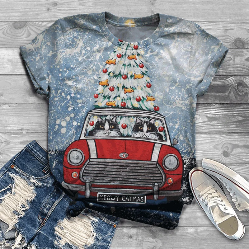 Мужская и Женская Повседневная летняя модная футболка с 3D рождественским принтом, удобная уличная рубашка, Детская футболка, 2021