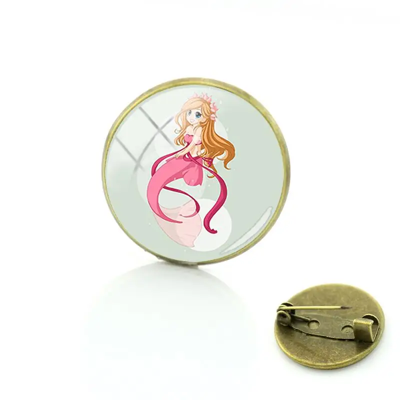 Брошь в стиле Диснея принцессы Микки, булавки, круглая стеклянная Ж...