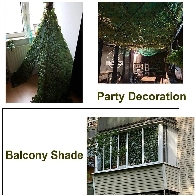Особенности:1. Обеспечивает превосходное покрытие, дизайн 3D листьев сочетает в себе эту камуфляжную сетку идеально с деревом или другими зелеными зонами.2. Легкий материал: Этот рулон в сложенном виде отличается легким и функциональным качеством. Легко носить и хранить. Ткань сшита на широкую сетку.3. Защита от солнца: идеальная теневая ткань для беседки, крыши, теплицы, клетки для животных, сада, сарая для автомобилей и т. д.4. Дополнительные виды применения: экран конфиденциальности-повесить на садовую изгородь или под навес в качестве украшения и экрана конфиденциальности; В качестве фона-в качестве украшения фона для коробки дисплея; для детей-для дома на дереве, для украшения детских спален, Чтобы создать зеленую базу для вечерние, которые дети любят прикрывать свои места для скрытий и т. Д.