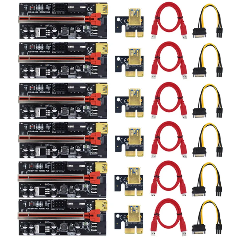 36 шт. PCI-E Pcie Riser 009C Plus Экспресс 1X 16x расширитель PCI E USB Райзер GPU двойной 6-контактный адаптер карта SATA 15pin для майнера BTC