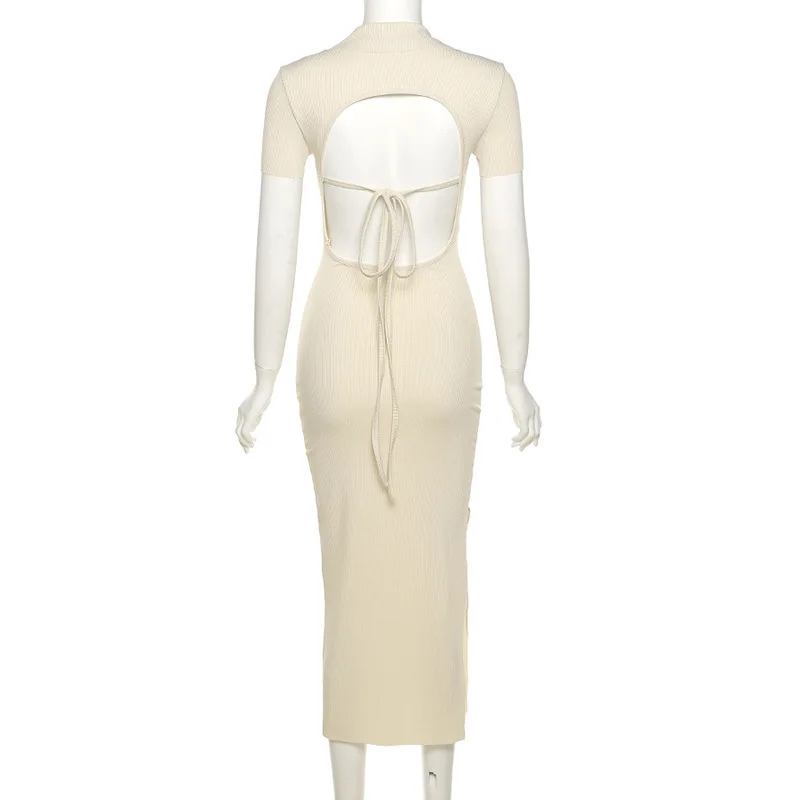 Элегантные Женские однотонные облегающие вечерние платья Adogirl, повседневное летнее модное уличное платье с коротким рукавом, открытой спиной и Боковым Разрезом, 2021