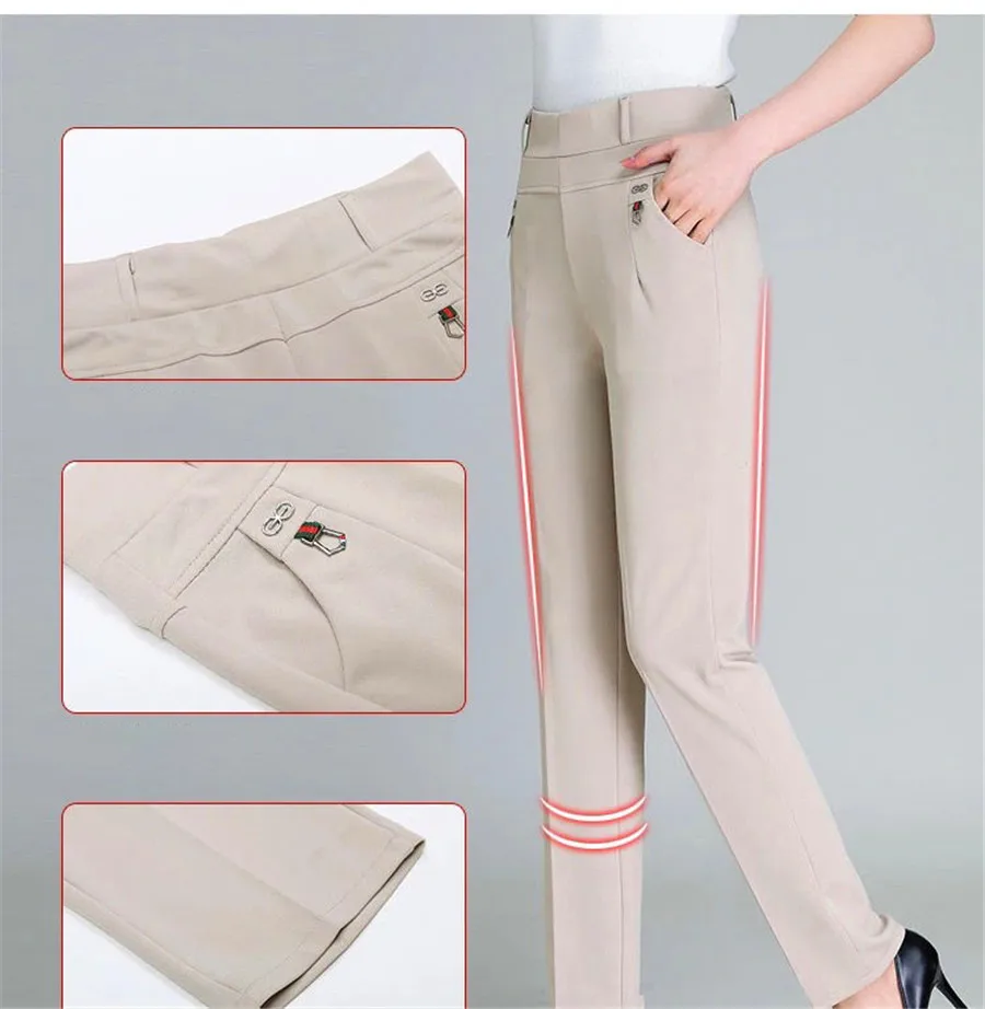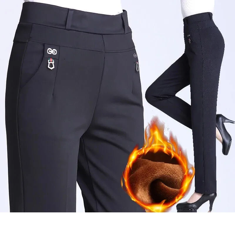 Брюки женские зимние бархатные плотные теплые шаровары для офиса женские эластичные повседневные брюки с высокой талией однотонные джинсы для мам