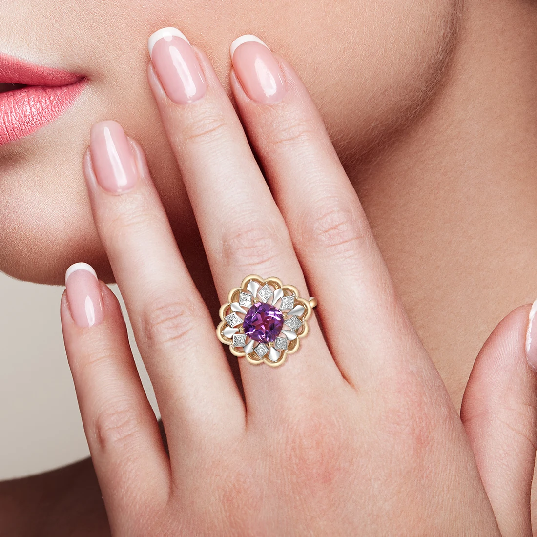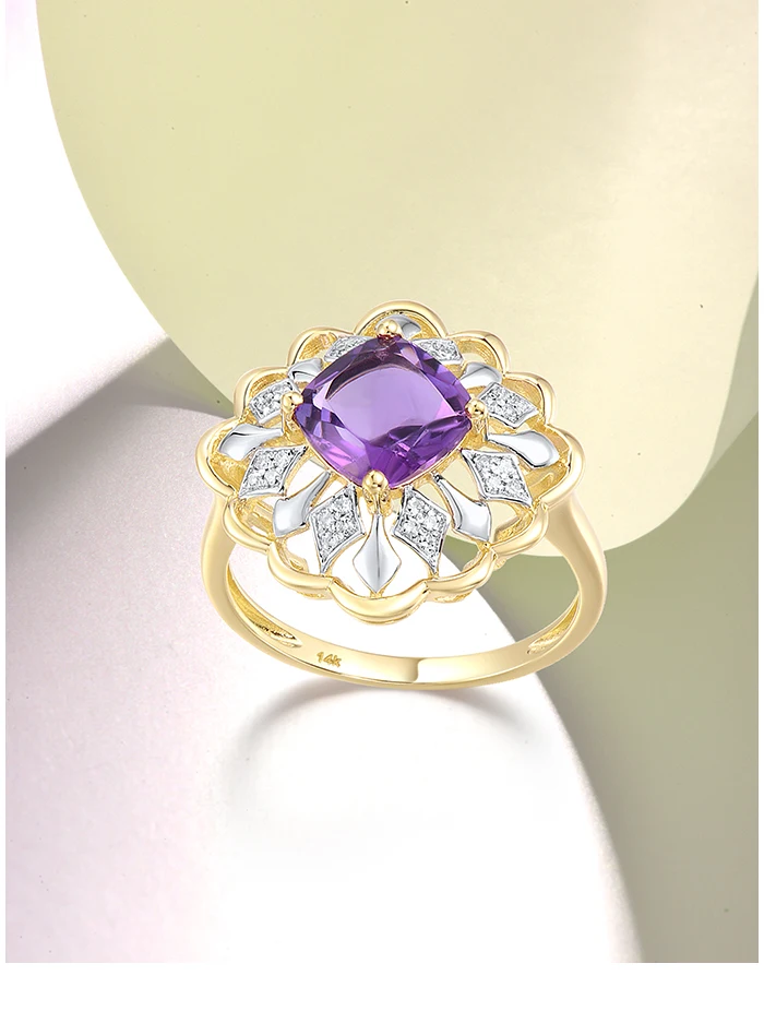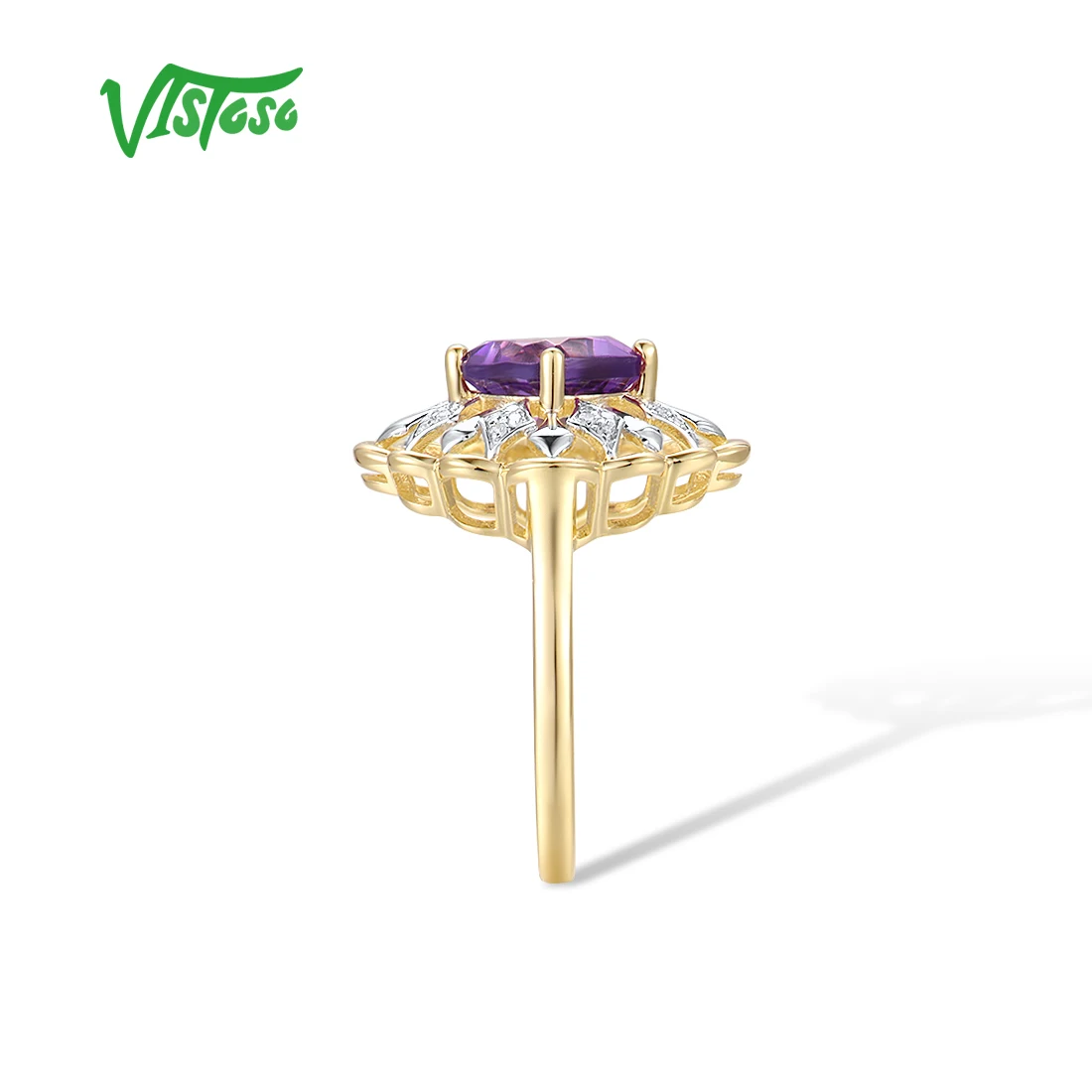 Женское золотое кольцо с аметистом VISTOSO, желтое золото 14 к 585 пробы, роскошный гламурный подарок, ювелирные украшения из драгоценных камней