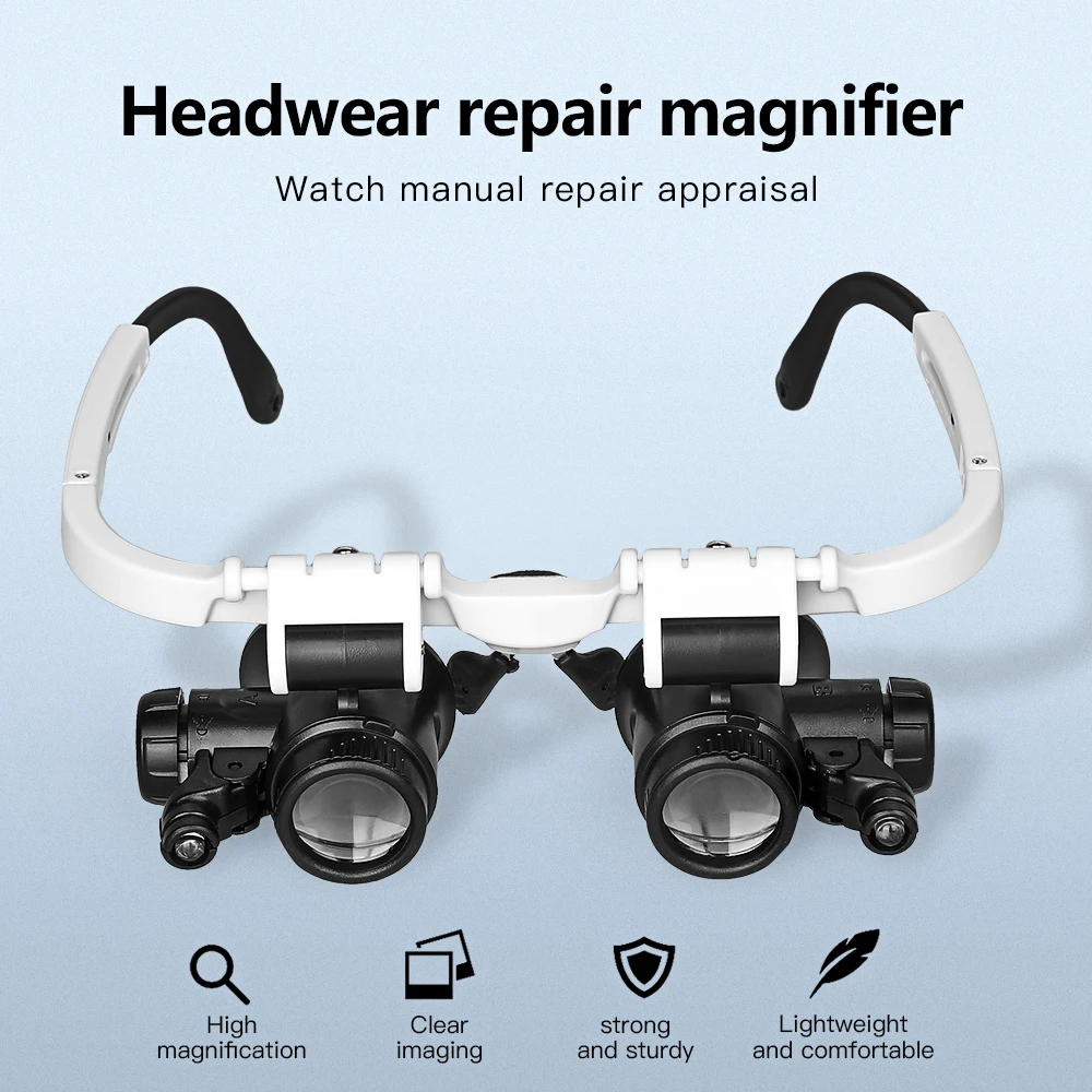 Увеличительное стекло на голову с 2 светодиодами, повязка на голову...