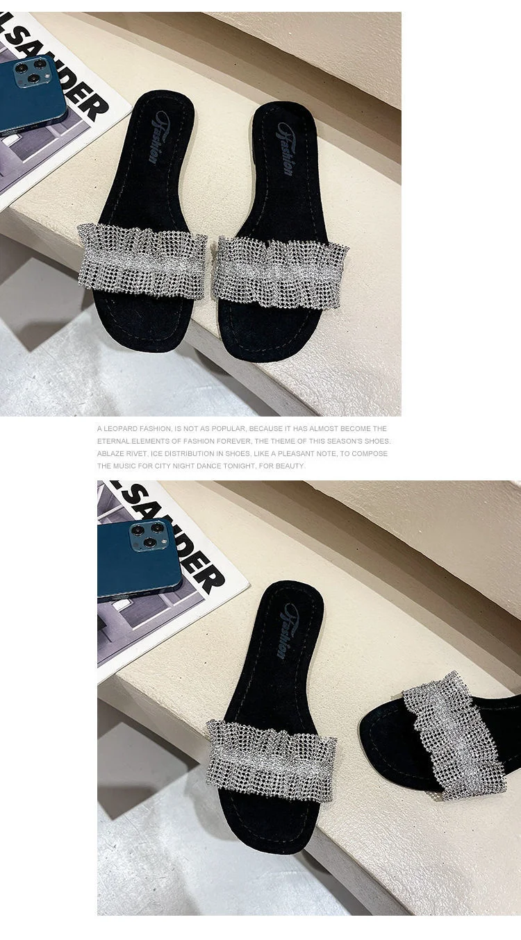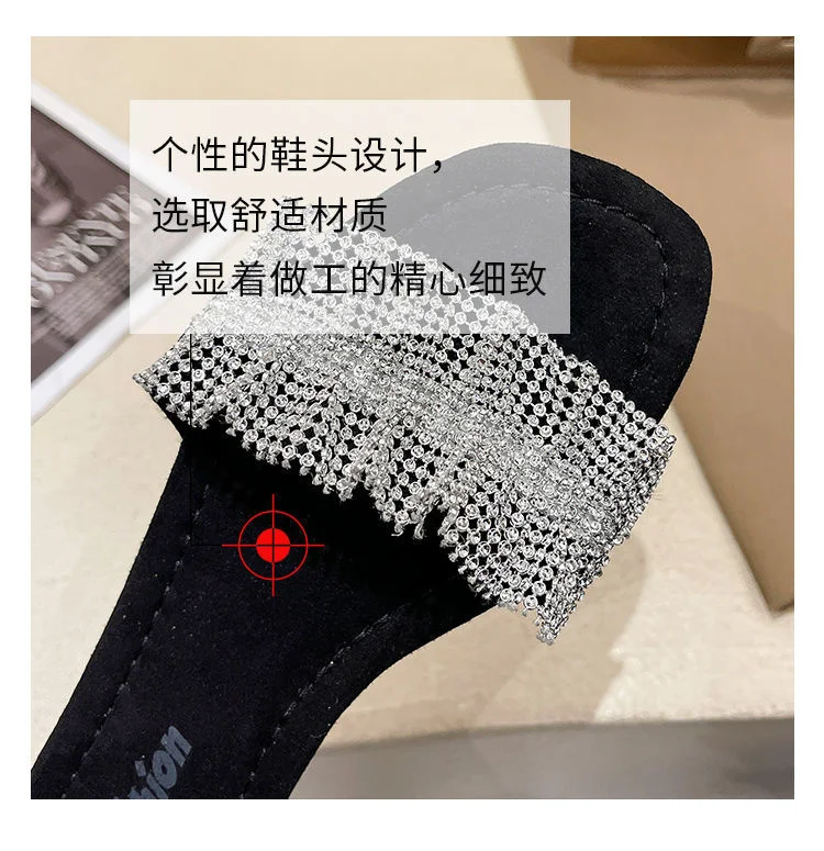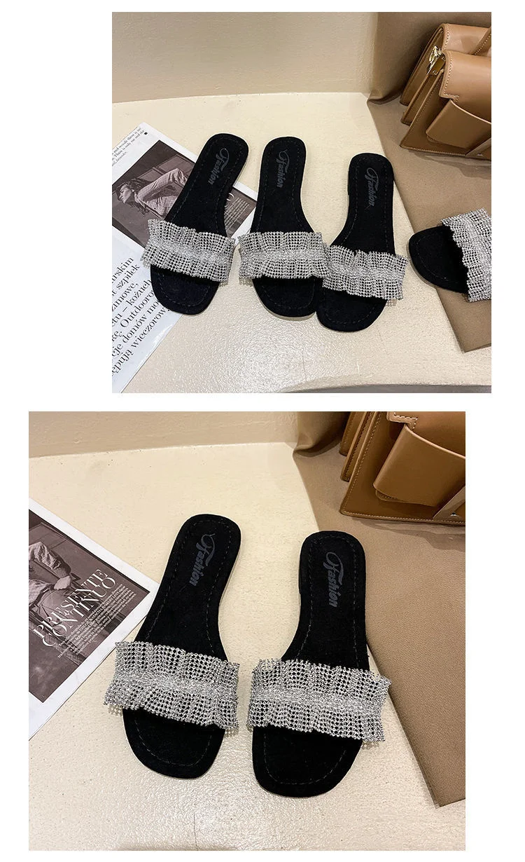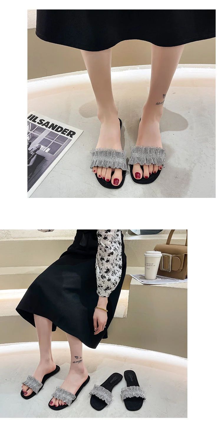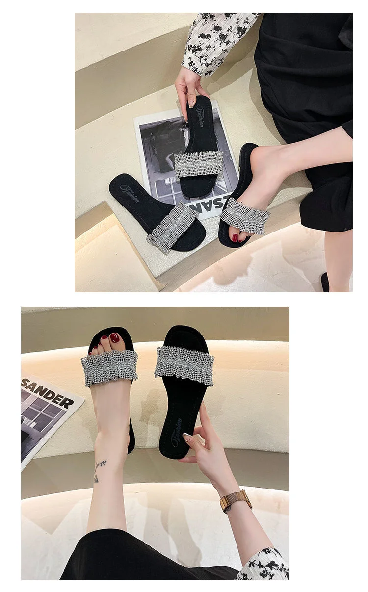 Новинка 2021 года; Сезон лето; Красные блестящие шлепанцы со стразами; Женские удобные сандалии на плоской подошве; Сандалии Феи; Универсальная обувь