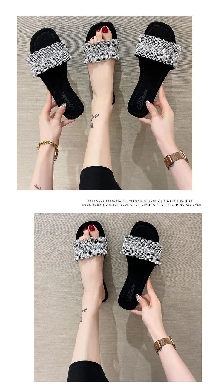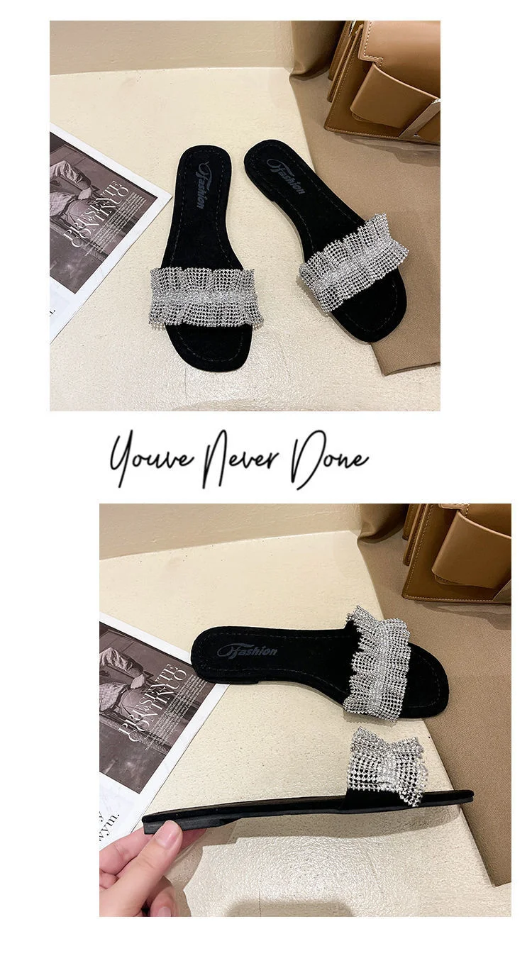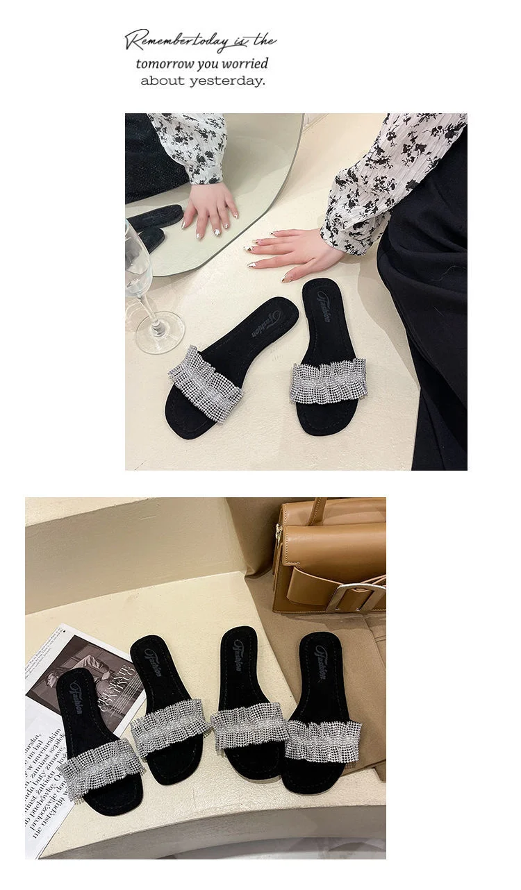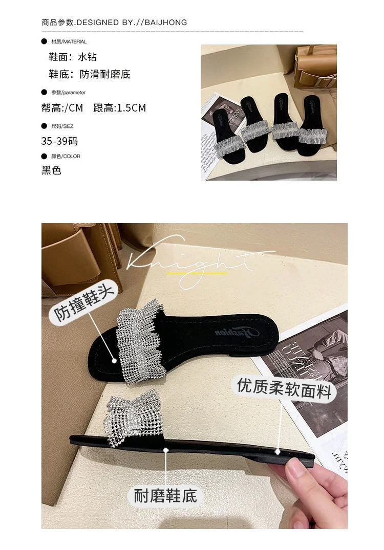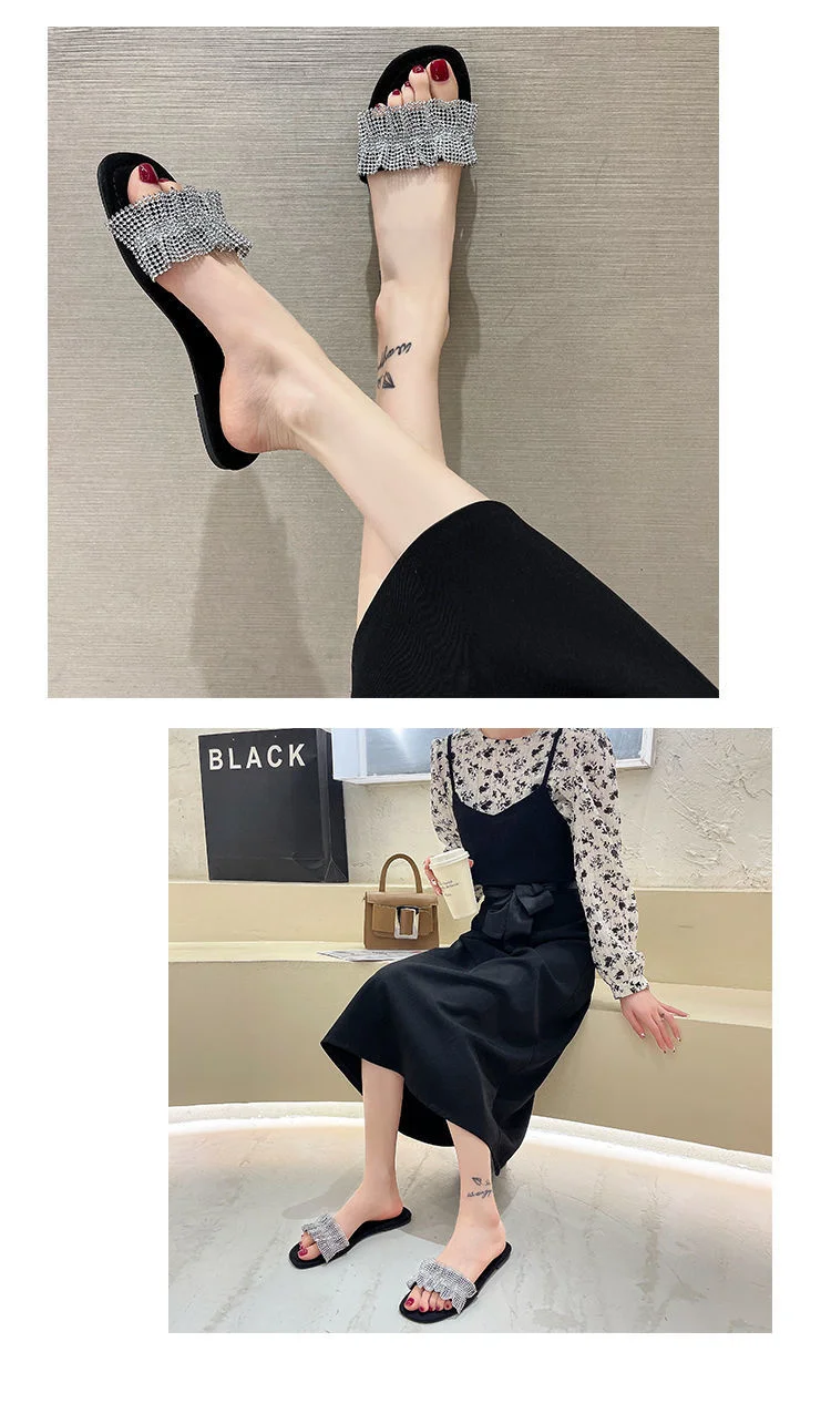 Новинка 2021 года; Сезон лето; Красные блестящие шлепанцы со стразами; Женские удобные сандалии на плоской подошве; Сандалии Феи; Универсальная обувь