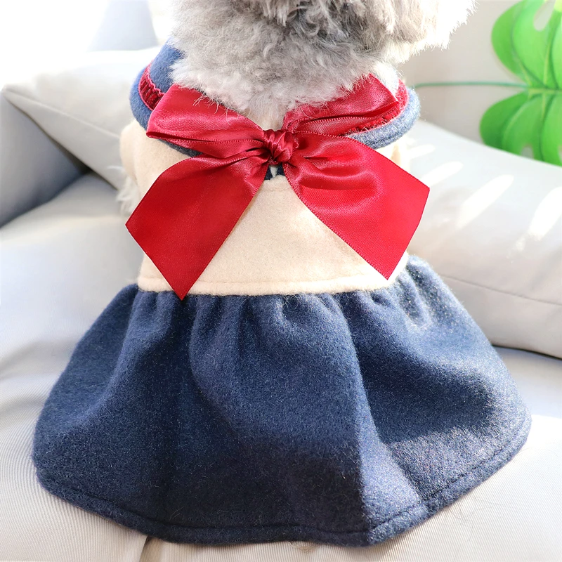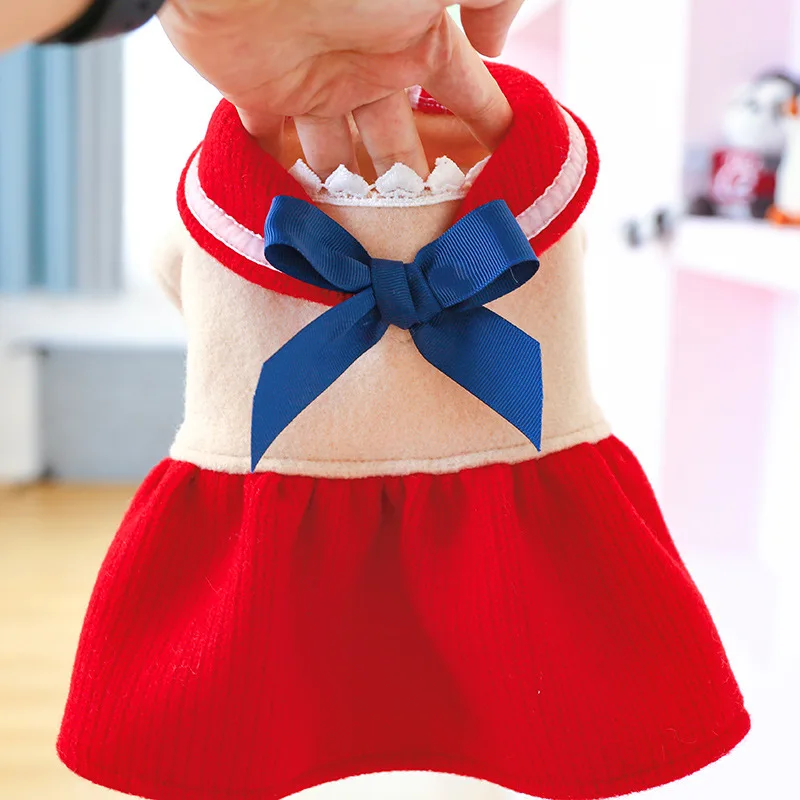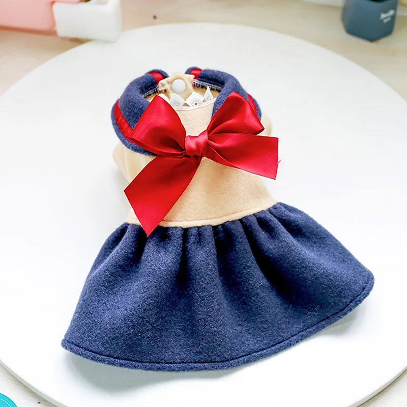 Милое платье с бантом для собак, зимняя одежда для домашних животных, одежда для девочек, собак, кошек, щенков, собак, Йорков, померанского пуделя, Бишон, Ших, тцу, костюм S