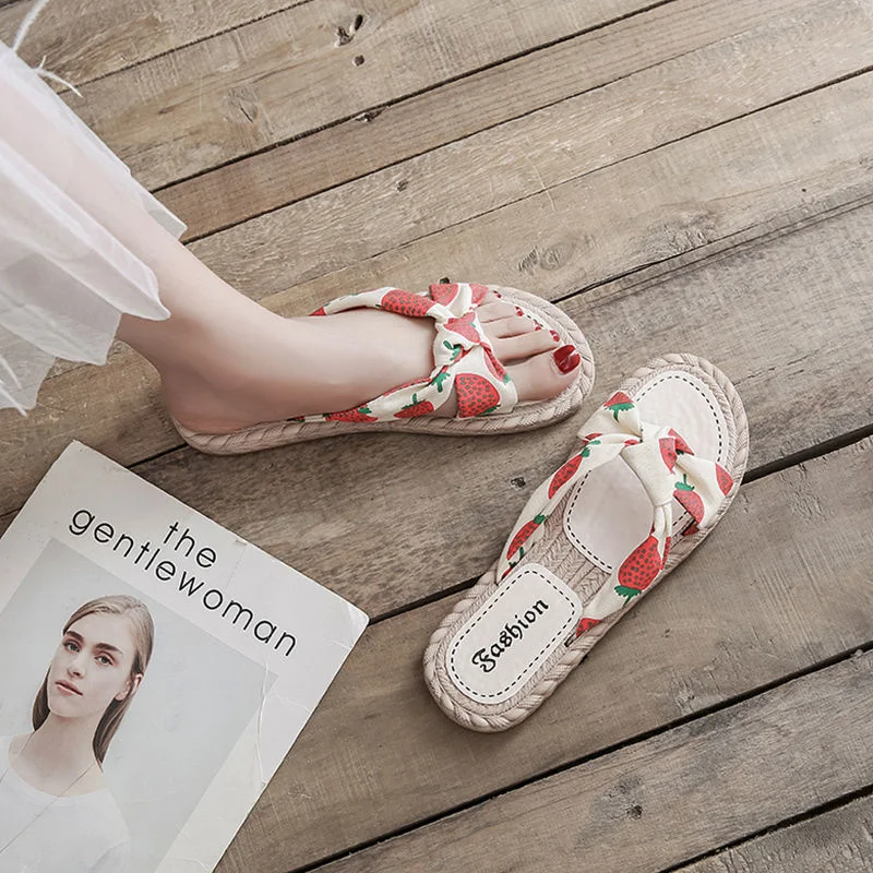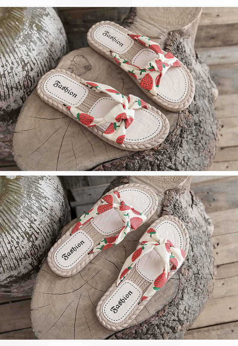 Ins/римские сандалии для женщин; Новинка 2021 года; Сезон лето; Клубничные универсальные пляжные сандалии с красной подошвой на плоской подошве