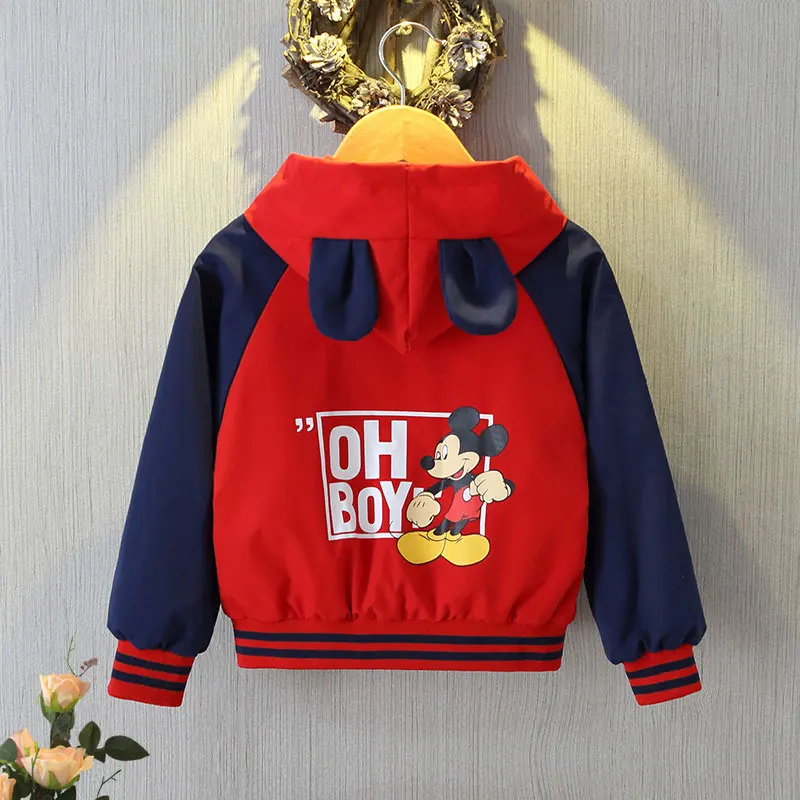 Осенняя одежда для маленьких мальчиков, куртка с капюшоном с Микки Маусом, пальто, милая Корейская ветровка, Детская верхняя одежда для малышей, кардиган для девочек