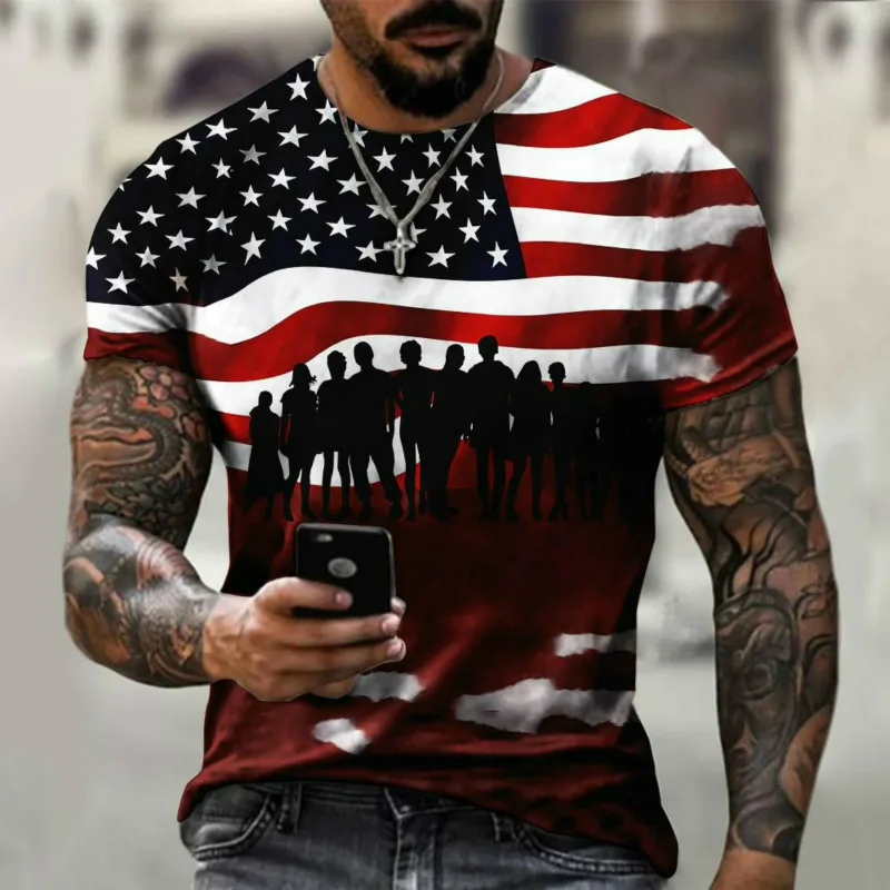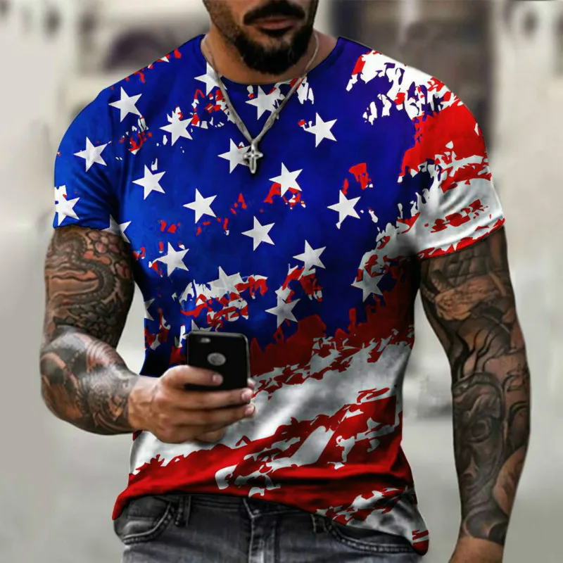 Новая летняя популярная мужская одежда с принтом американского флаг...