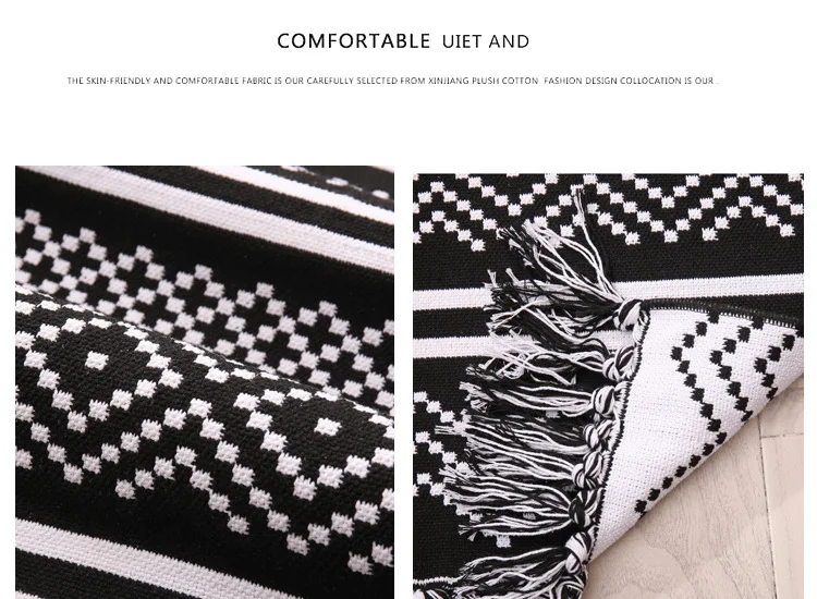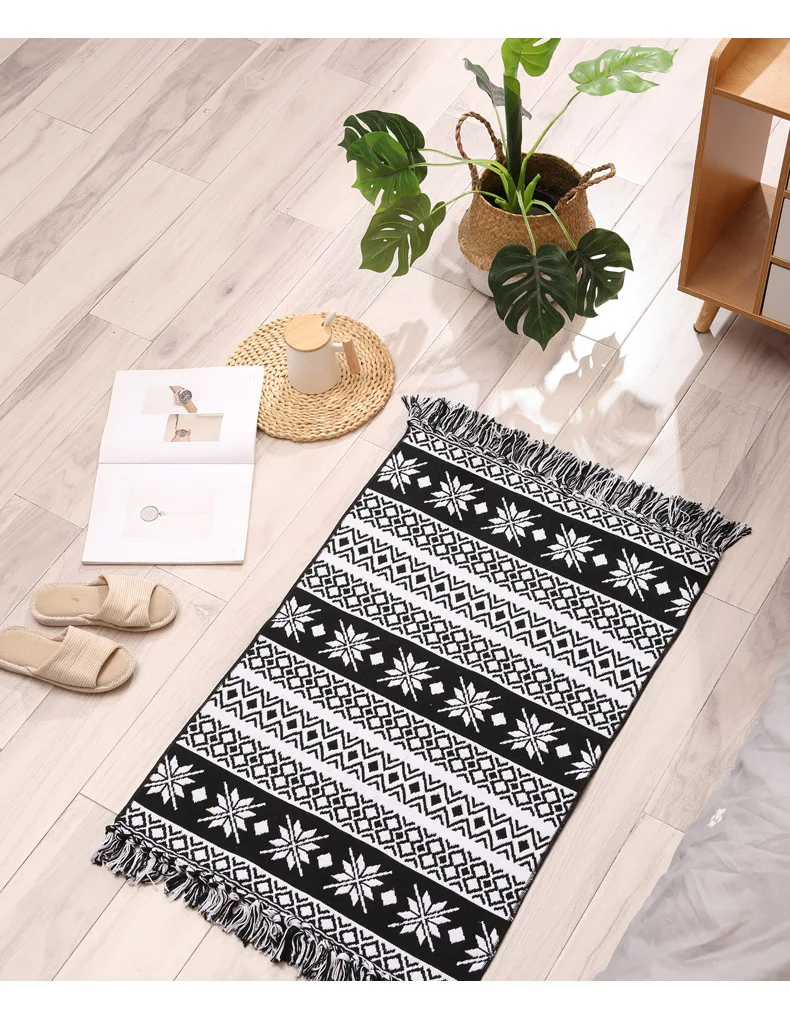 3D льняной хлопковый синельный бархатный ковер для дома, гостиной, дивана, журнального столика, коврик с кисточками, украшение для спальни черно-белого цвета ручной работы