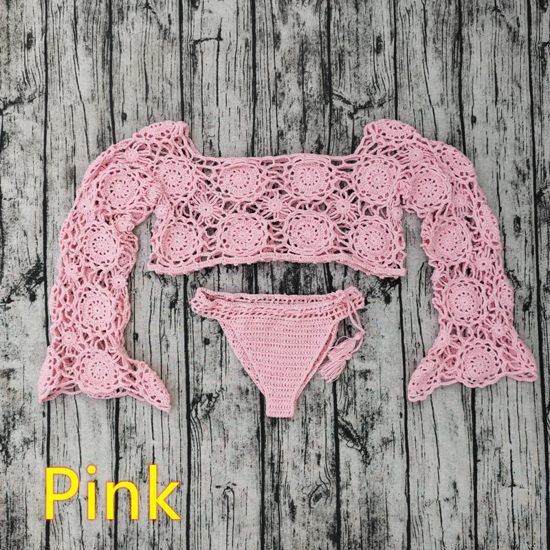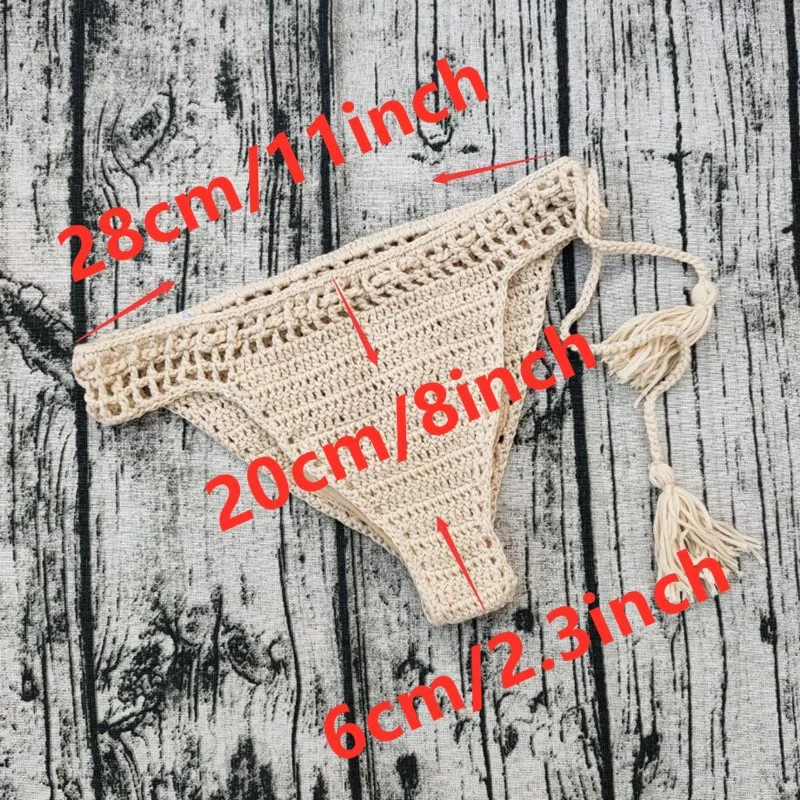 Комплект женских пляжных плавок в стиле бохо, связанное крючком бик...
