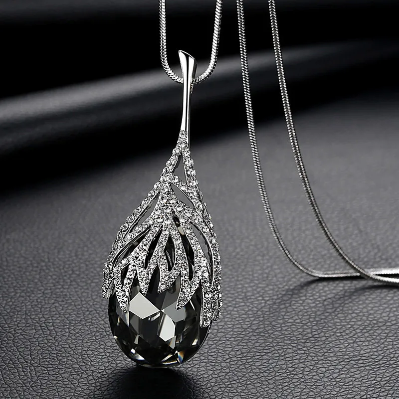 Женское длинное ожерелье с подвеской в виде большой капли воды