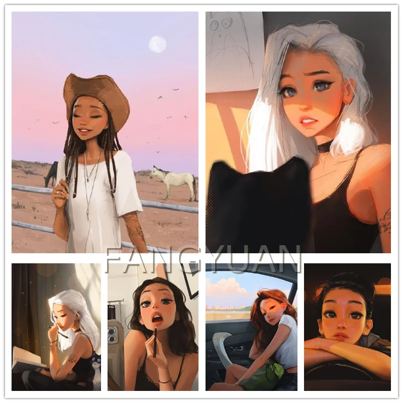 Алмазная 5d-картина с надписью мультяшная красивая девушка, полностью круглая Алмазная вышивка сделай сам, стразы, мозаика, украшение для дома