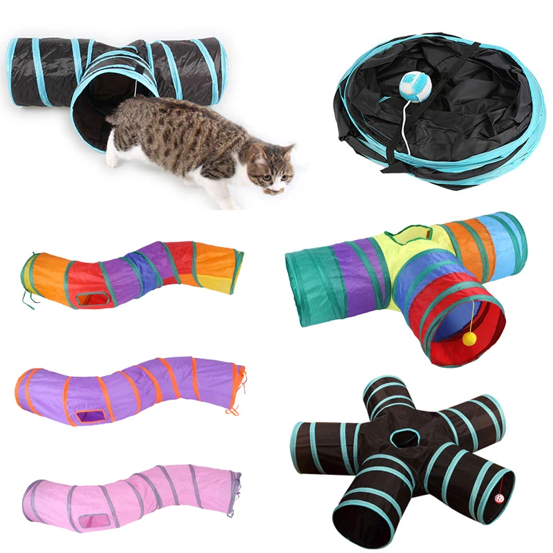 7 цветов, Забавный туннель для кошек, 2 отверстия, игровые мячи, ск...