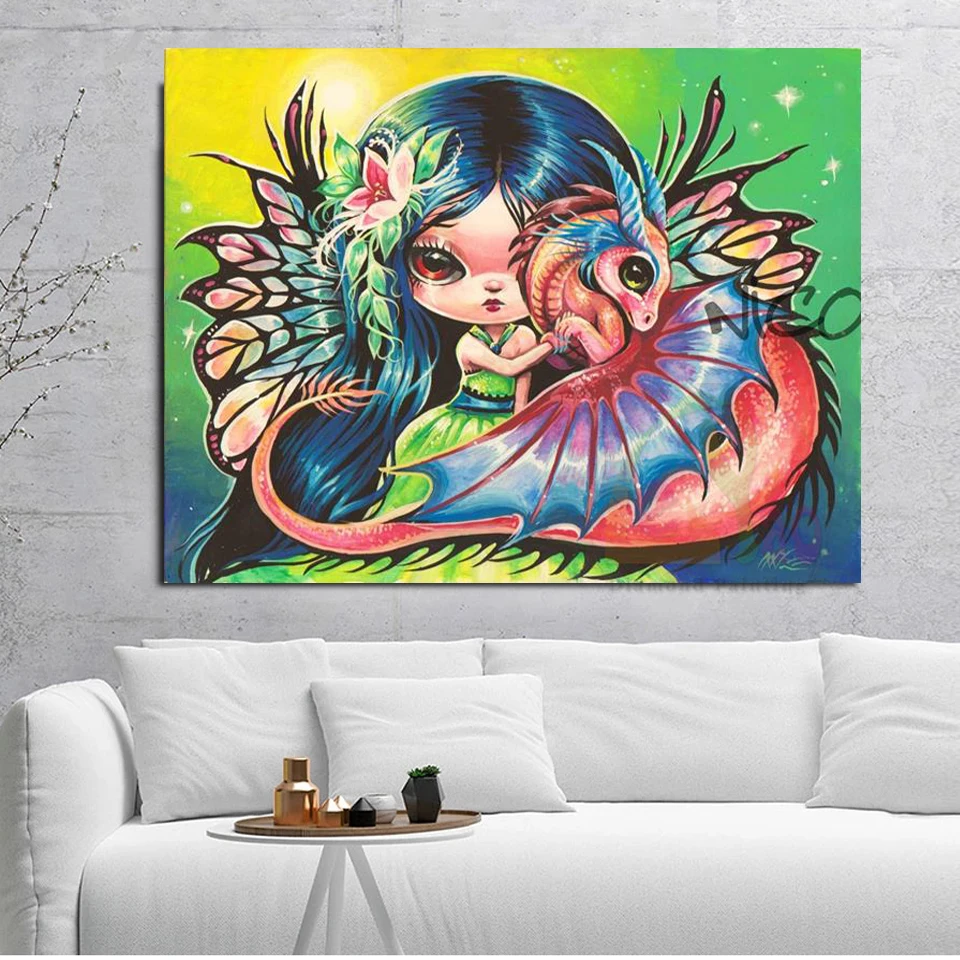Полная квадратная Алмазная картина мультяшная девушка дракон Фея мозаика рукоделие картина Алмазная вышивка круглая дрель домашний декор