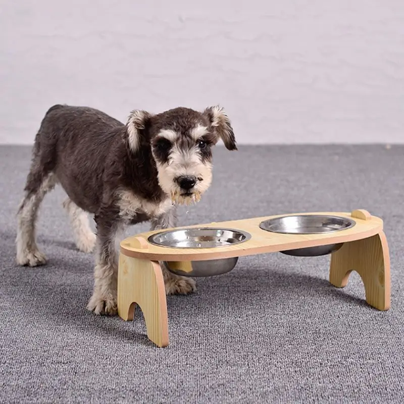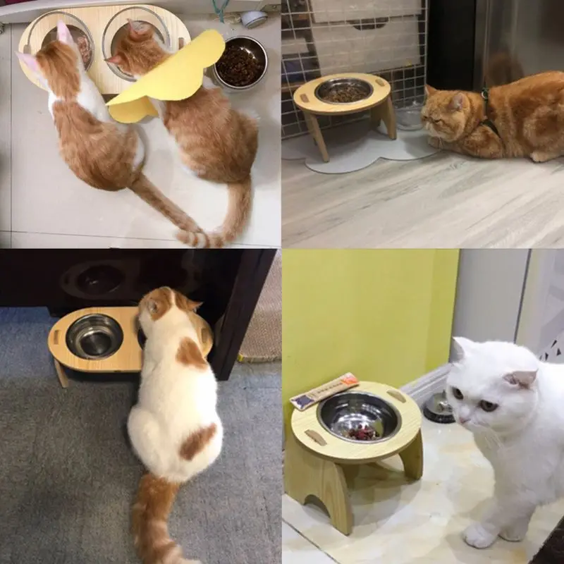 Поднятая миска для корма для кошек деревянная рама наклонная миска для кормления домашних животных из нержавеющей стали