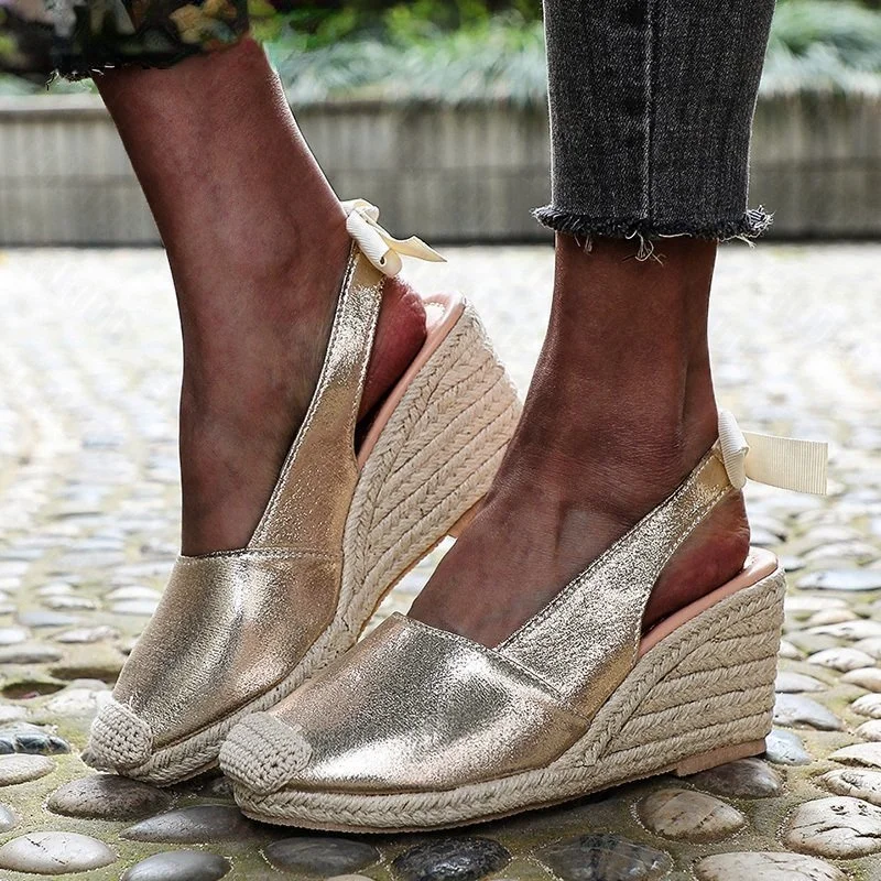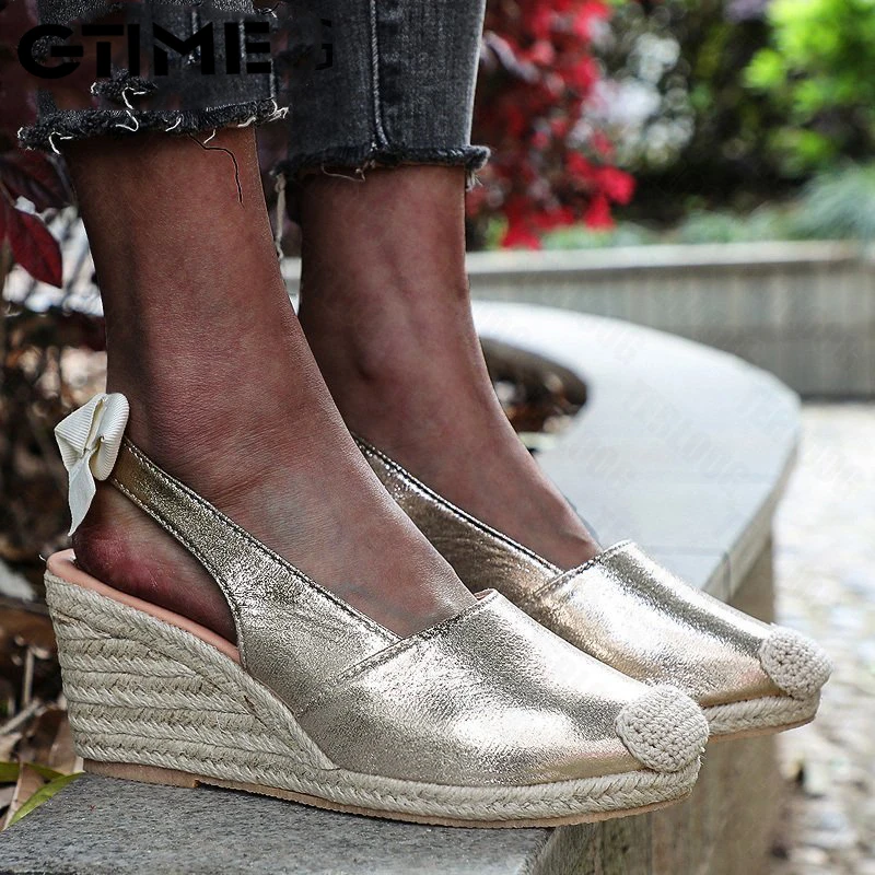 Сандалии женские летние на высокой танкетке, эспадрильи, обувь с ремешком на пятке, с бантом, гладиаторы