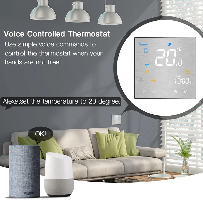 Работает с Alexa Google Home. Термостат обеспечивает наиболее удобную температуру для вашего дома, где бы вы ни находились, используя Голосовое управление.