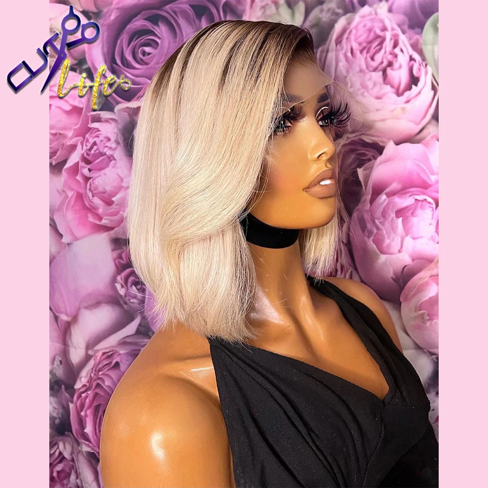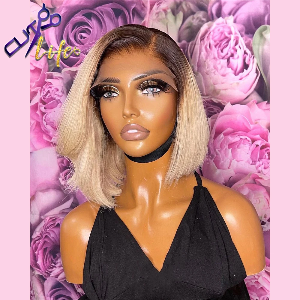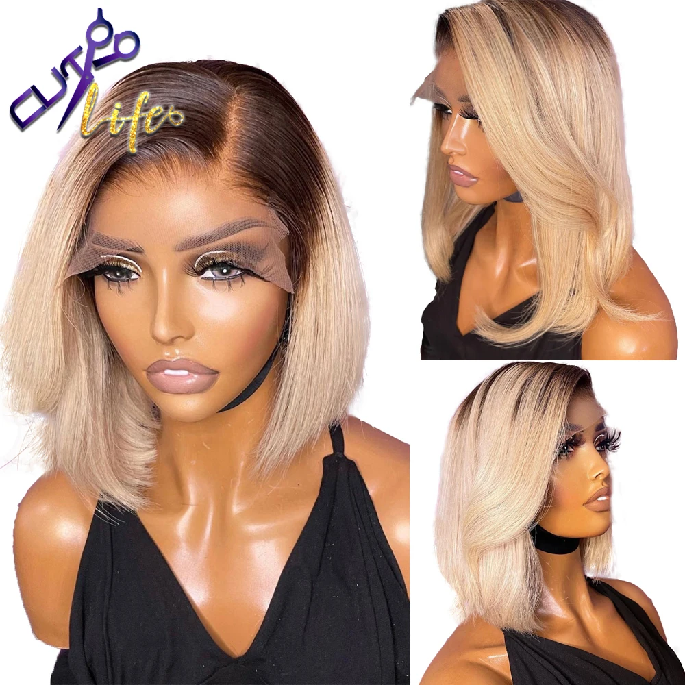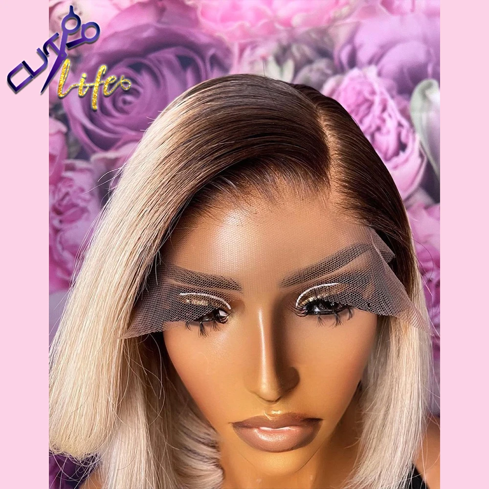 Парик 1B613 с эффектом омбре, блонд, короткий Боб, парик на сетке 4x4, парики из человеческих волос для женщин, предварительно выщипанный дешевый парик на сетке, бразильские волосы без повреждений