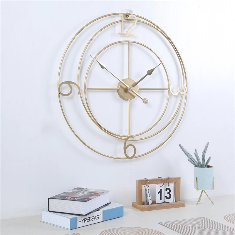 Современные минималистичные цифровые настенные часы из кованого железа, золотые креативные настенные часы, европейские часы в стиле арт-деко