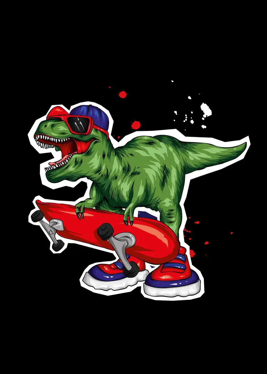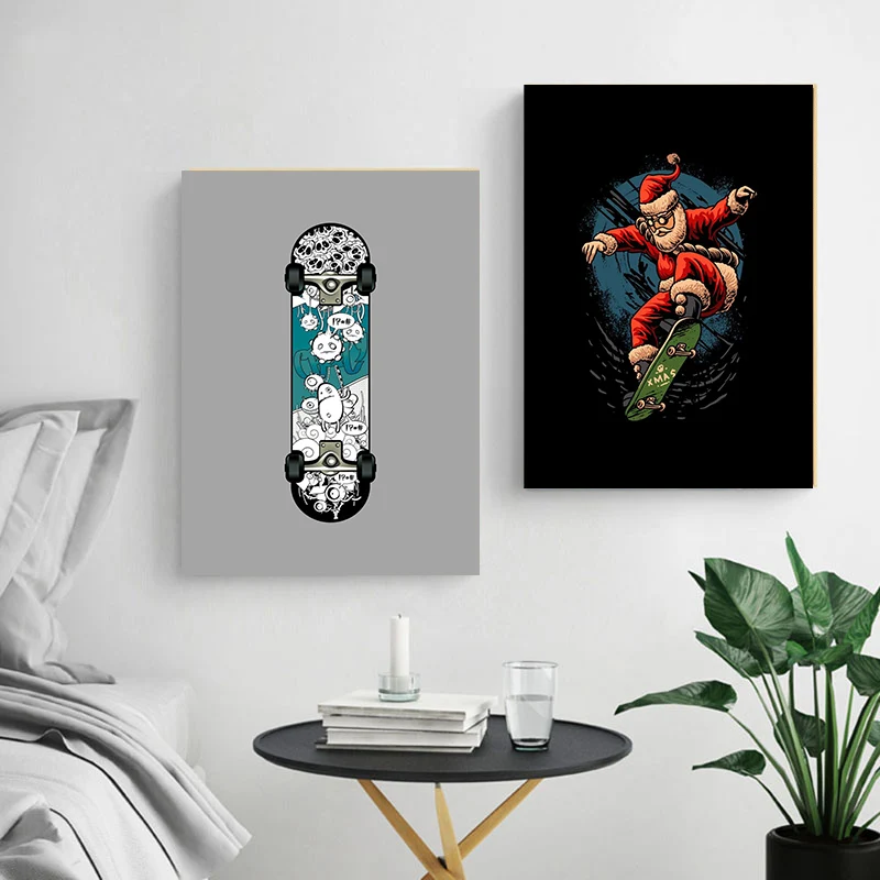 Космический плакат со скеййтбордом мультфильм Рождество динозавр настенное Искусство Холст Живопись скандинавские плакаты печатные настенные картины декор комнаты