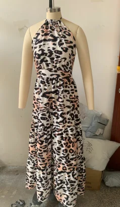 Женское леопардовое Платье макси с лямкой на шее, открытой спиной и...