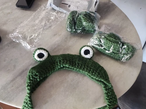 Вязаная Шапочка с большим глазом и лягушкой, зимняя, зеленая, шляпа лягушки