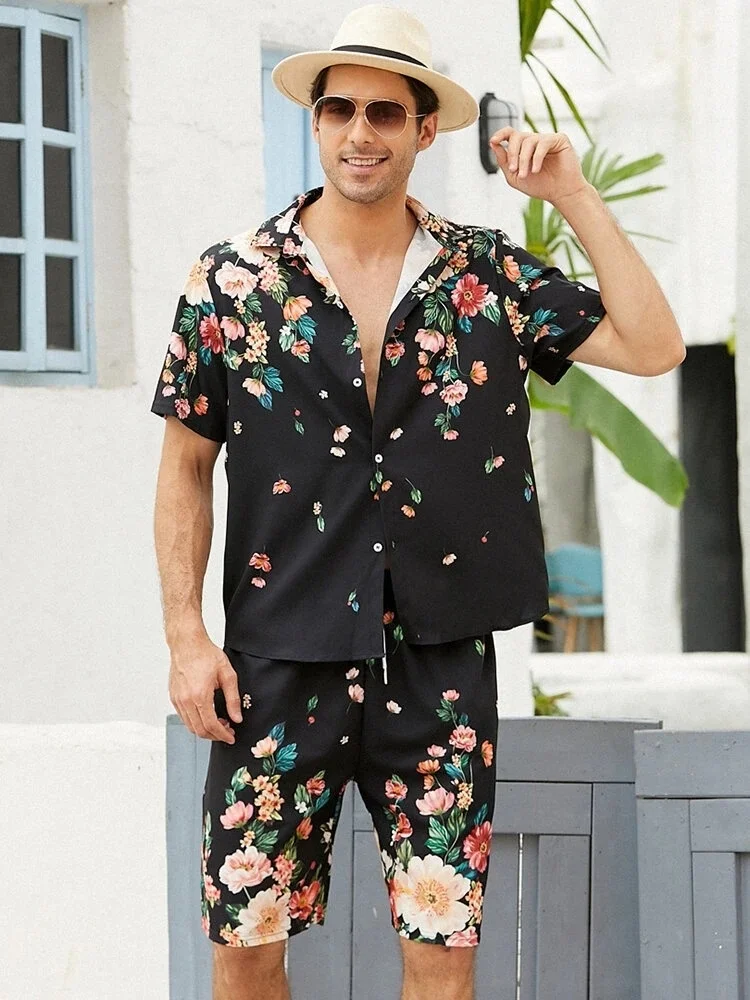 Мужской комплект из 2 предметов, гавайская рубашка с коротким рукав...