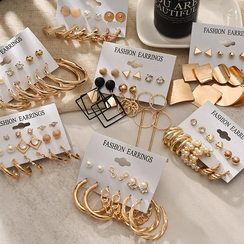 Набор женских серег, Золотые серьги для женщин, геометрический рису...