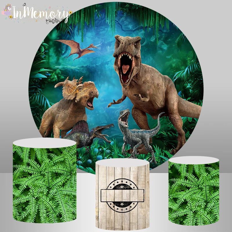 Круглый фон для фотосъемки парка Юрского периода с изображением малыша мальчика на 1-й День Рождения Декор Конфеты стол Баннер динозавр круг фон
