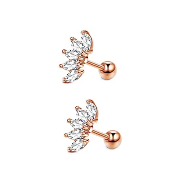 Серьги-гвоздики с фианитом для женщин, кольцо для пирсинга на хрящевую ткань из хирургической нержавеющей стали, 2 шт., 16 г, из опала