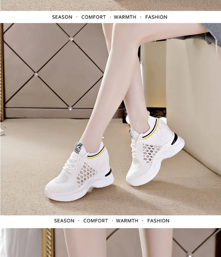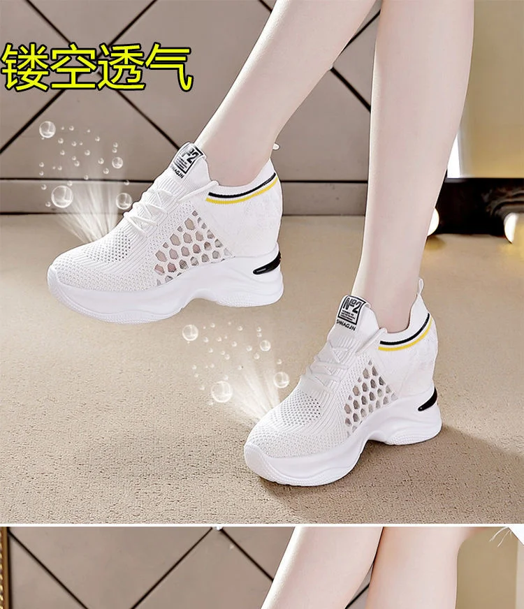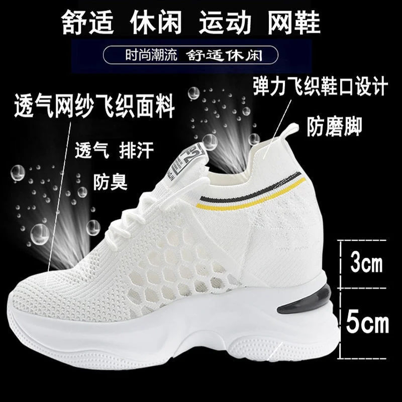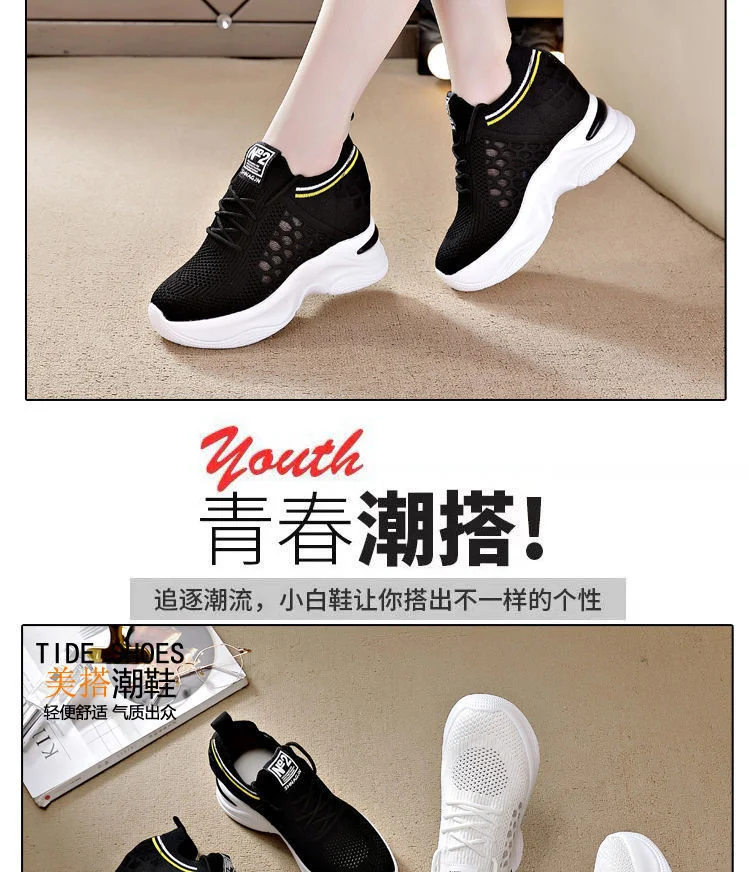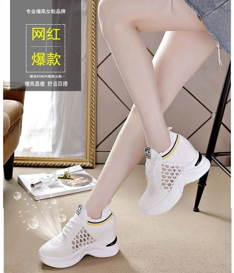 [Возврат посылки доставка платная] дышащая и тонкая женская обувь с внутренней высотой 2021 Весенние новые универсальные маленькие белые туфли высокий каблук 8 см спортивная обувь для отдыха женская обувь
