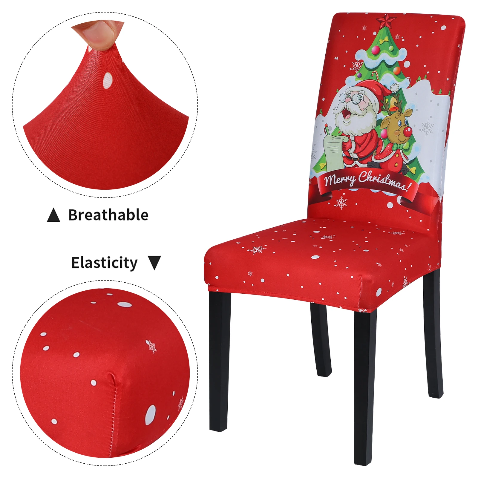 Эластичные рождественские чехлы на стулья, эластичные чехлы с принт...