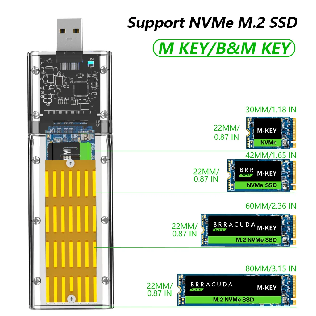 Корпус для внешнего жесткого диска UTHAI M.2 SSD, прозрачный, USB3.0, 3,1 SSD, PCIE протокол, считыватель