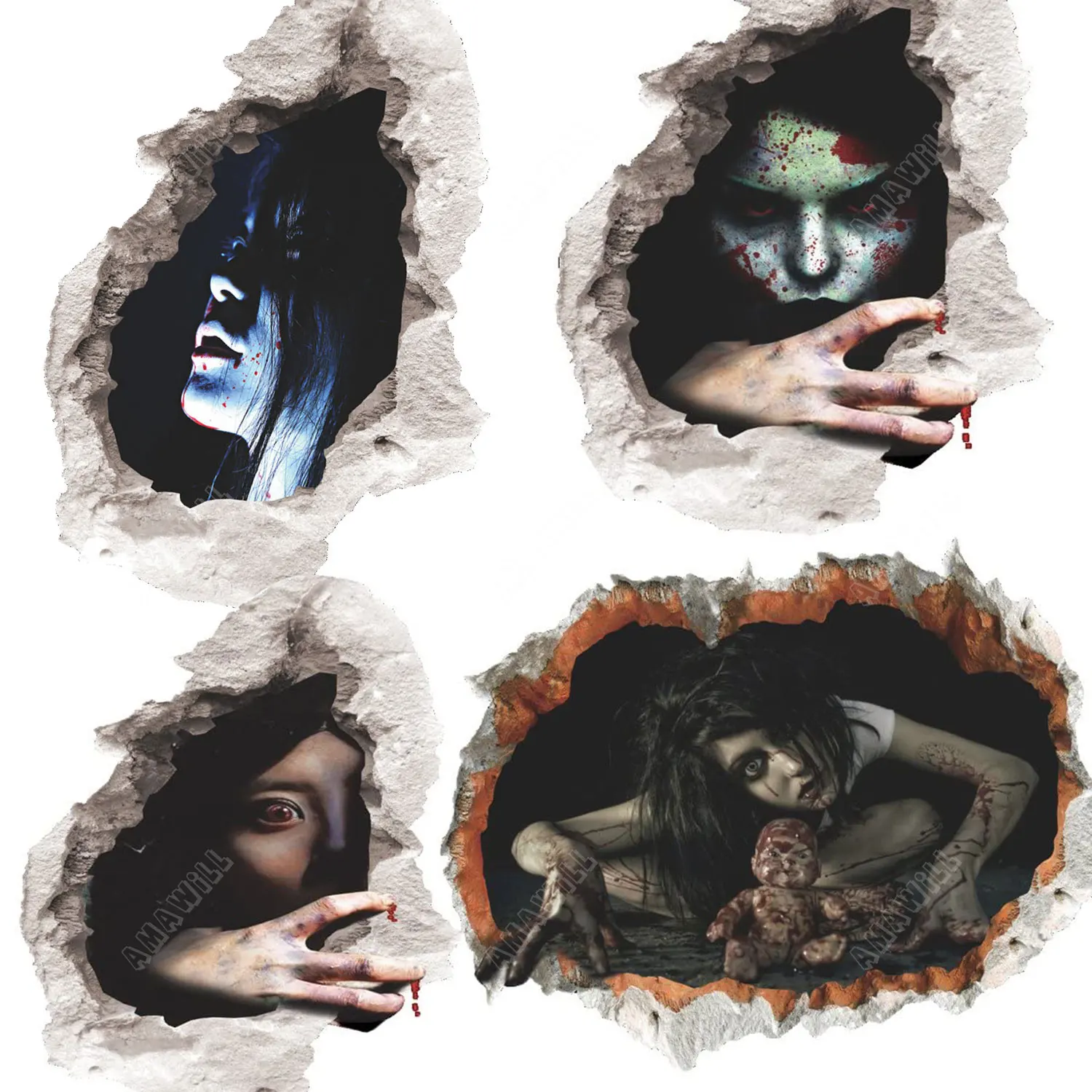 1 шт., настенные стикеры ужасов на Хэллоуин, для спальни, гостиной, декоративные 3D женские обои с изображением призрака, настенные Стикеры, настенные украшения