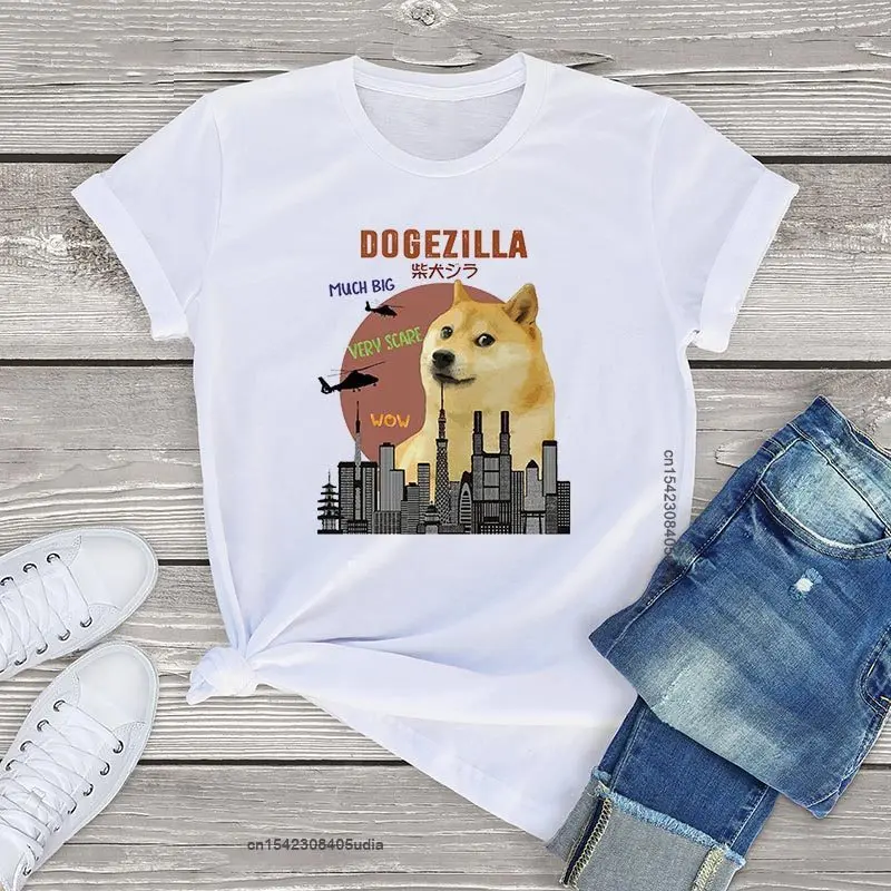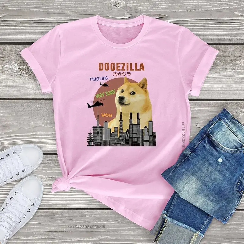 Футболки унисекс Doge Zilla, женские и мужские топы, Doge Meme Shiba Inu Dog, винтажные женские рубашки для девушек, Хлопковые женские блузки для манги